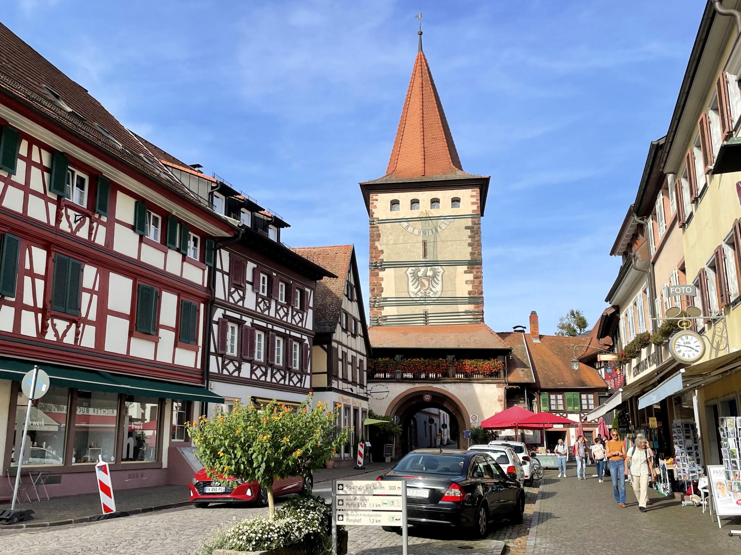 After leaving the lake we drove through the black forest to Triberg, the home of the cuckoo clock. We navigated to the motorhome parking behind the supermarket where we thought we might stay for the night. it was very busy and we were lucky to get a space as people arriving shortly after us had to wait for people to leave. Obviously a very popular destination, we decided to take a walk around the streets along with the many people who were being disgorged from coaches. After wandering for half an hour, and looking at some exceptionally over the top cuckoo clocks, we decided it just wasn’t for us. Maybe we were missing something, but there just didn’t seem to be anything other than the clocks. I couldn’t even be bothered to find some Schwarzwälder Kirschtorte. We left our carpark space for someone who might appreciate it more and looked for somewhere else to stop.
