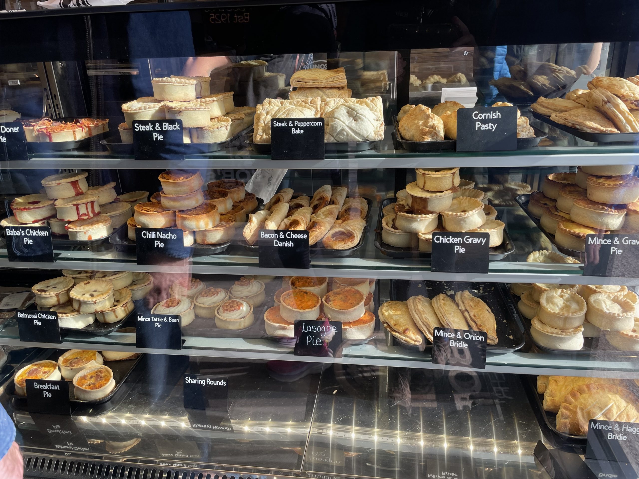 But that was closer to the end of the day. First of all we walked up through the town to an establishment that Paul had identified (he’s getting good at finding interesting food, even if most of it is not the healthiest). ‘Bob’s Pies’ is a pie shop that produces pies of all sorts of flavours, both traditional and unexpected. We bought a selection of pies to take away. Including ‘chilli nacho’ and ‘lasagne’ flavour.