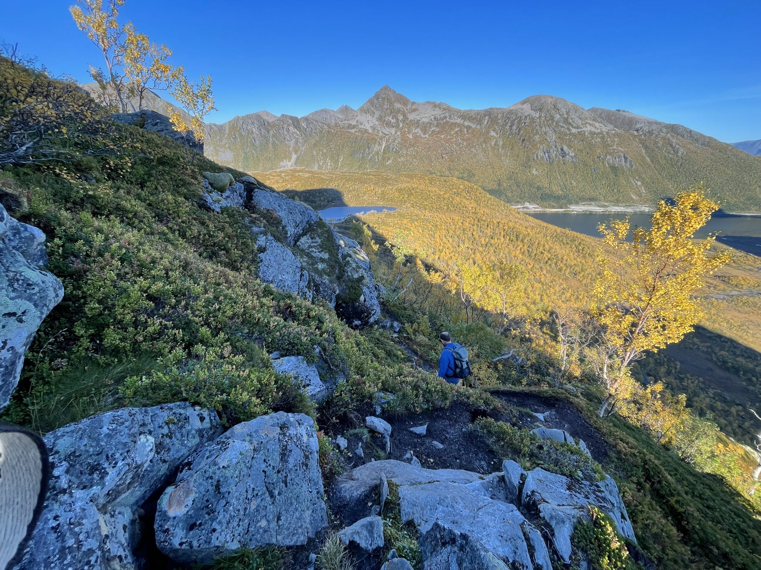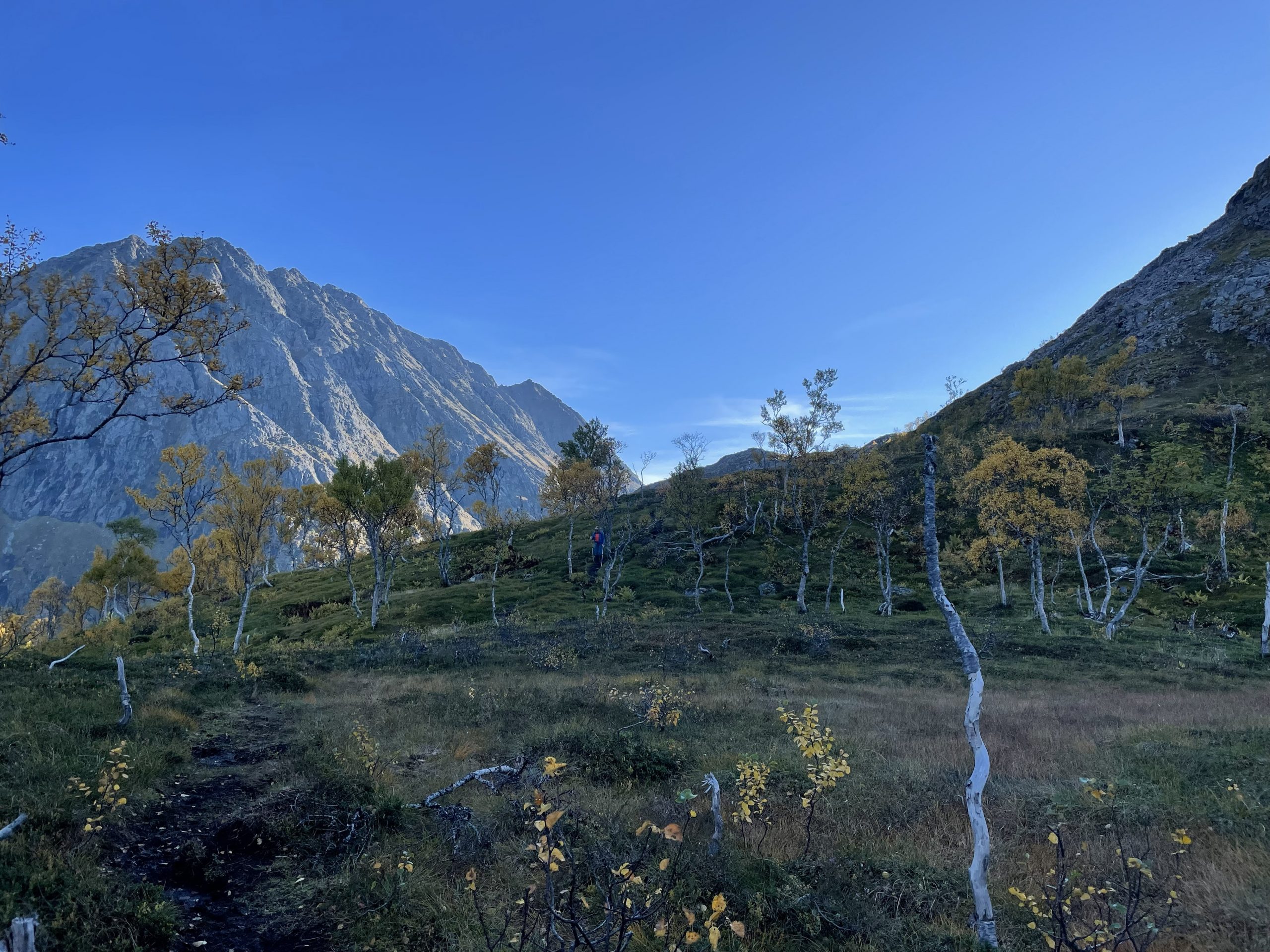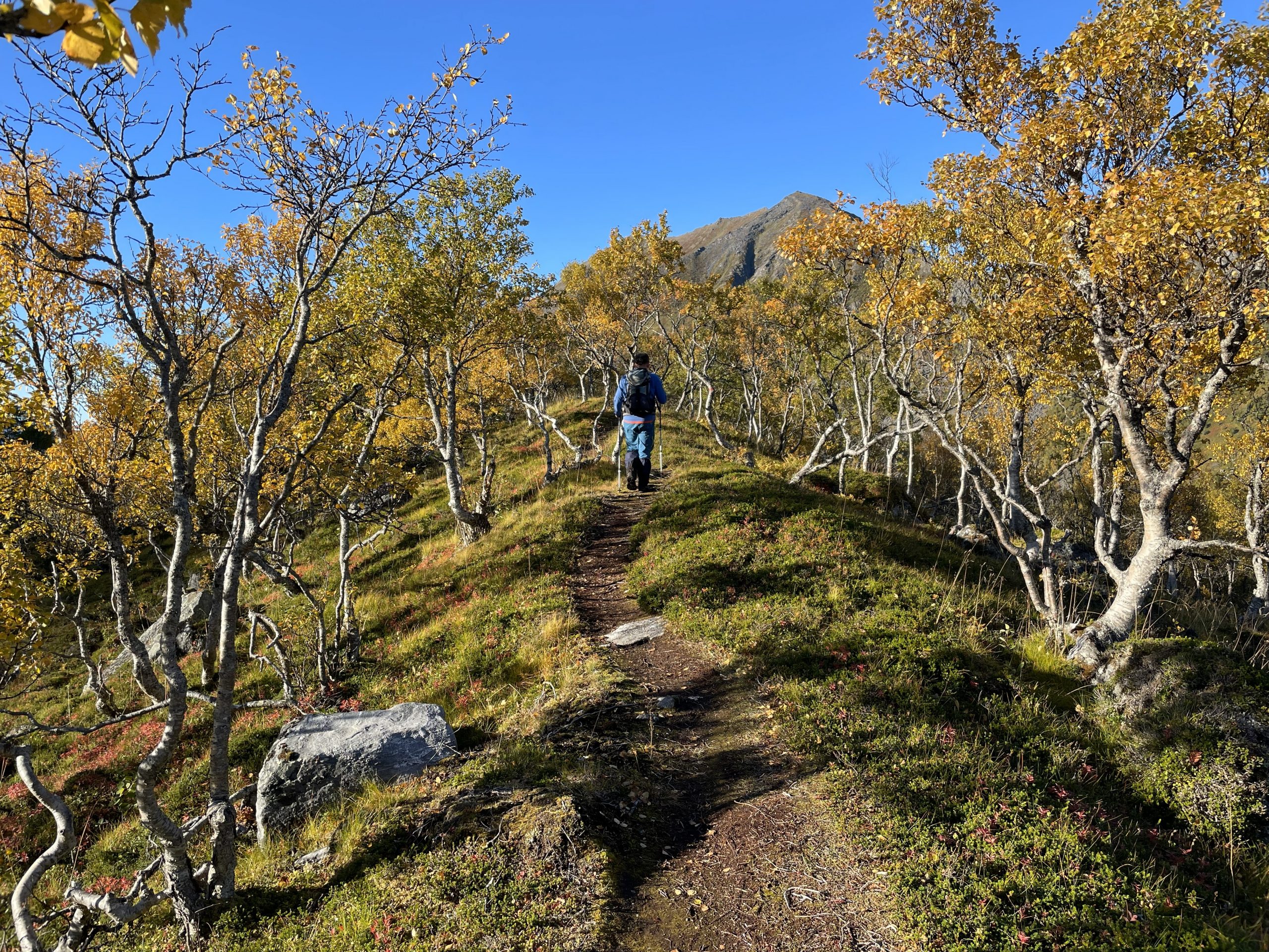 Once parked up and fed we looked at our original plans to see how far away we were. Fortuitously the map showed us a walk straight from our parking spot which would take us up to the Snytindhytta mountain hut which is often used as a starting point for Møysalen peak (the highest mountain in the area). Our search for a parking spot had left us in a better position than we could have hoped for.