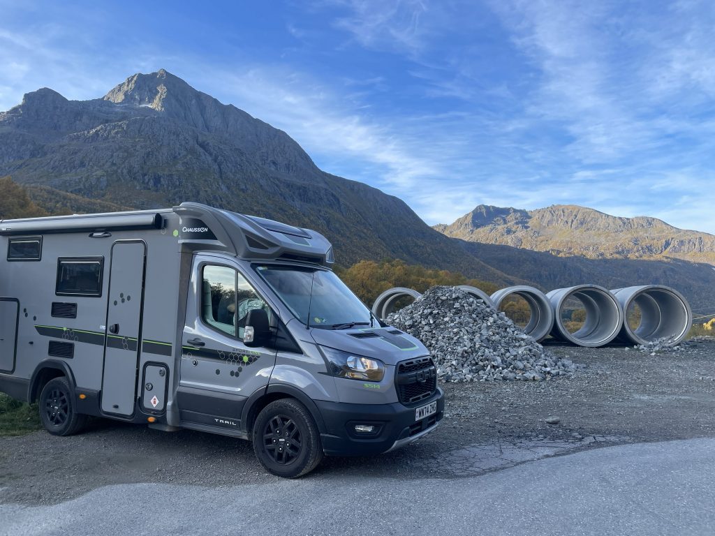 On Park4Night nothing was coming up in the vicinity, but we had driven past a parking area and, as the sun was setting, we didn’t want to spend ages looking for somewhere else. The small car park was a bit closer to the road that we liked but we haven’t encountered any roads in Norway that have been busy at night and the following morning was Saturday so we hoped to get a good night’s sleep. We shared the car park with some large concrete pipes but crossed our fingers that no one would be coming to move them around for the next 12 hours.