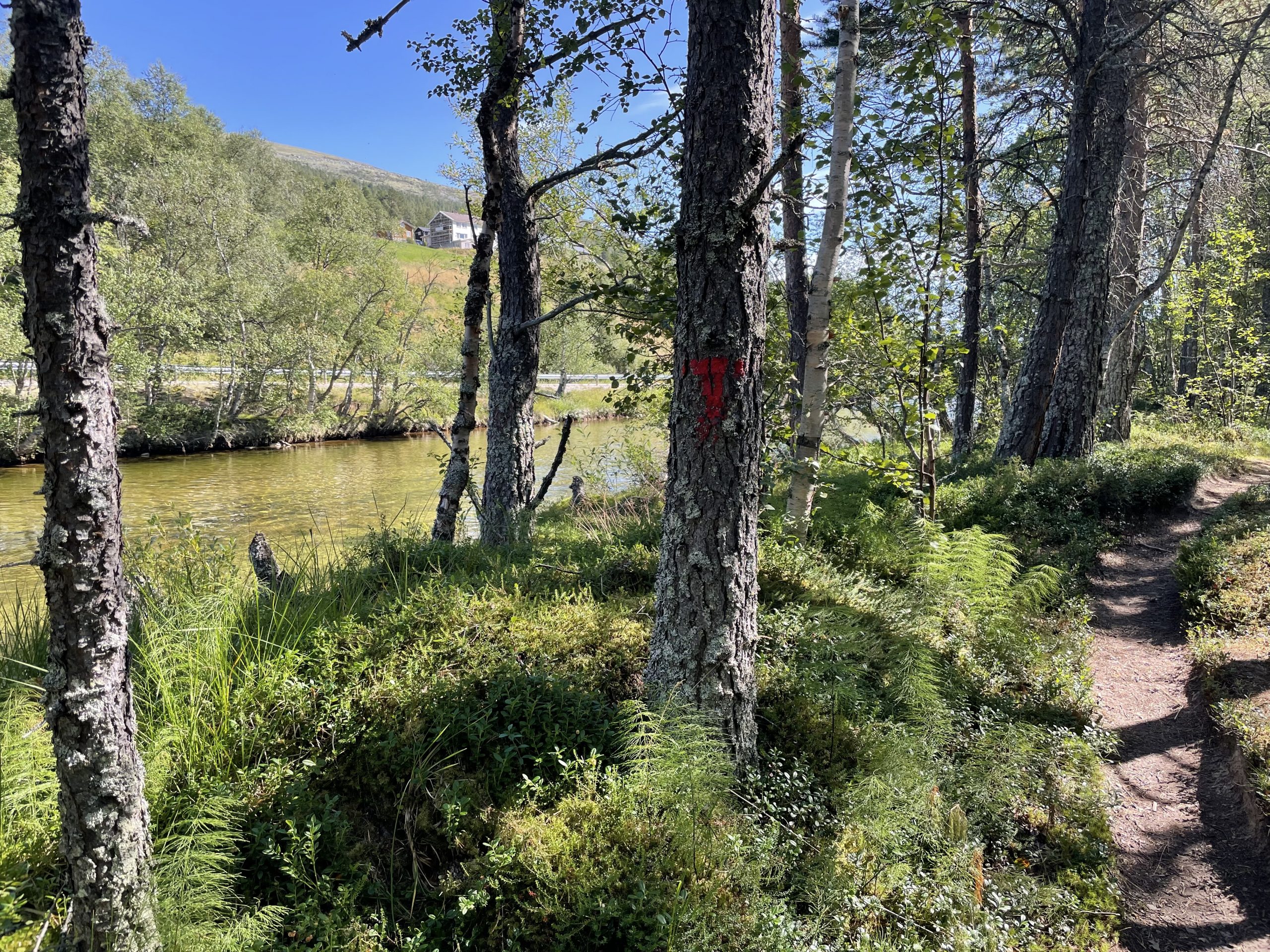 The start of the route took us uphill through agricultural land. This was quickly followed by what we have come to think of as typically Norwegian tourist infrastructure; complexes of grass roofed lodges and campsites where permanently sited caravans butt up against shed type extensions.