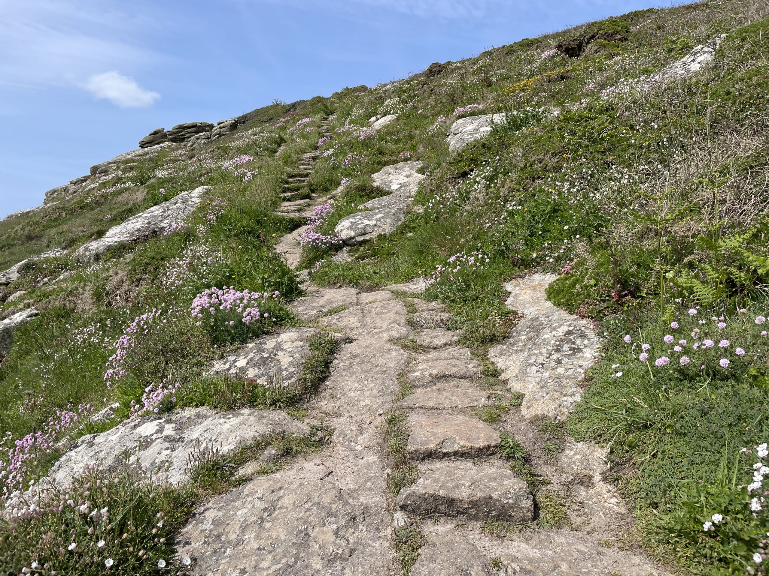 Paul and I took a short walk down to the coast between Newlyn and Mousehole along a very overgrown path, and walked up via a slightly less overgrown route. Paul’s legs were covered in scratches and nettle stings. I had worn trousers.