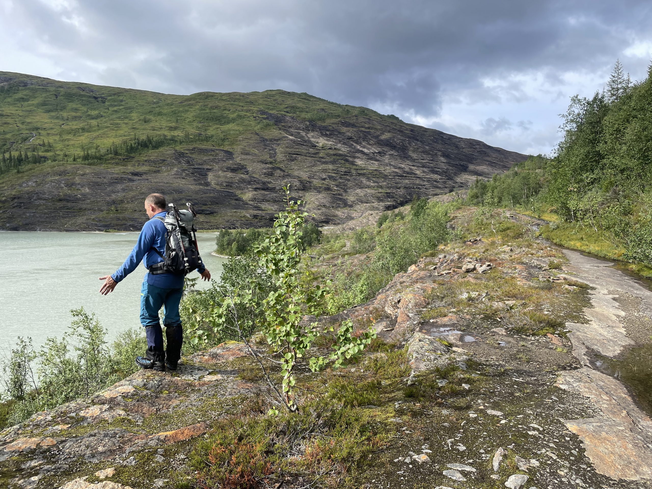 It’s about 7.5km in total (so 15km there and back), of which 4km is walking alongside Svartisvatnet. You can cut out the 4km lakeside walk by taking a boat from the campsite to the far end of the lake.