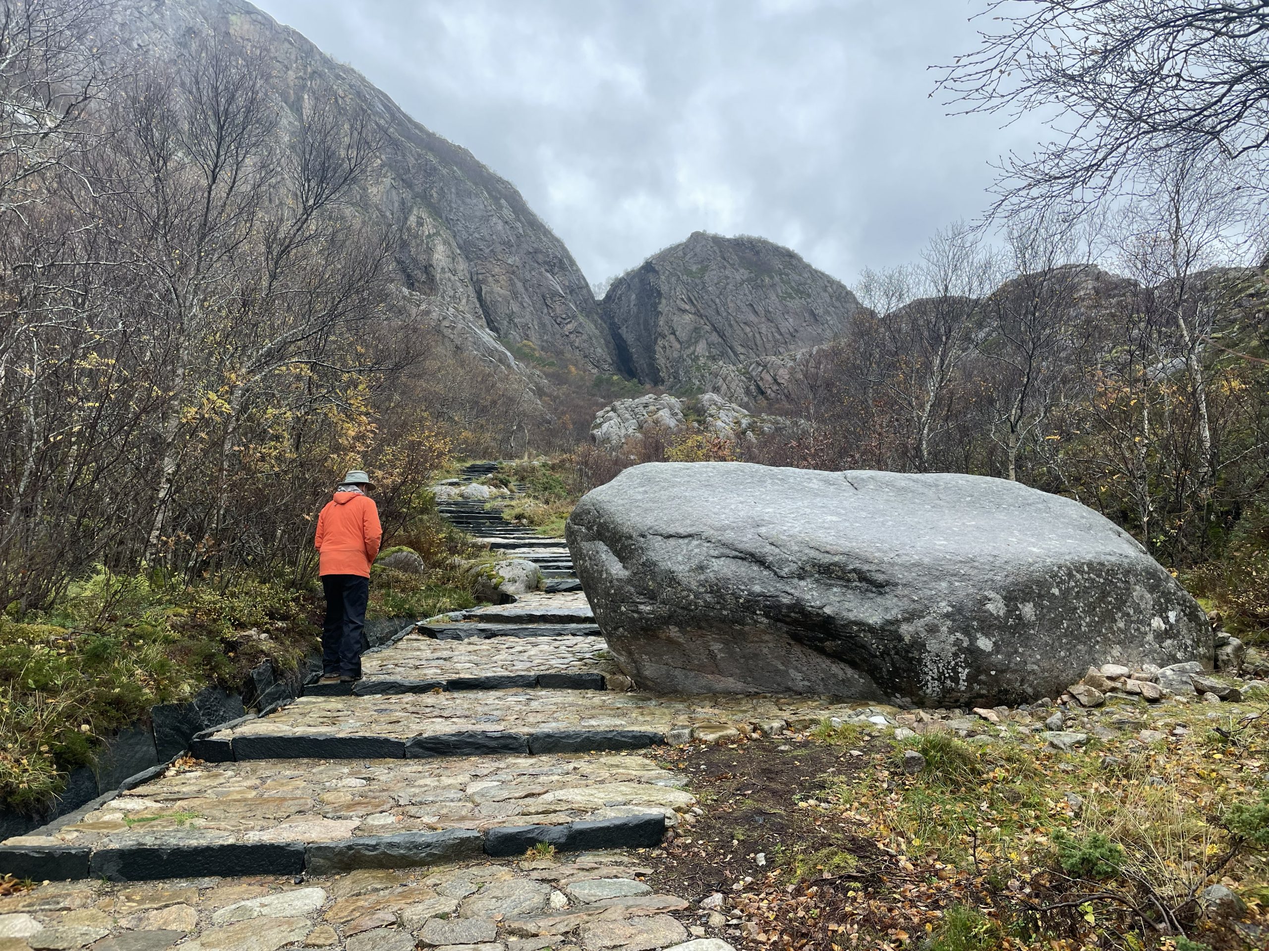 Torghatten is a mountain with a hole, a tunnel 166m in length that runs from one side of the mountain through to the other. It seems incredible that this is a natural formation, it looks so square you would think it had to have been made by man but that’s just because the angle of the rock is so vertical. I would love to tell you how it was formed, but there seem to be a number of conflicting theories. Perhaps it was formed through glacial action, or sea erosion, or a combination of both. Or maybe it was created when the troll king threw his hat into the path of Hestmannen the troll’s arrow. The hat became the mountain and the arrow made the hole. Fortunately the beautiful maiden who was the object of Hestmannen’s ire was able to escape.