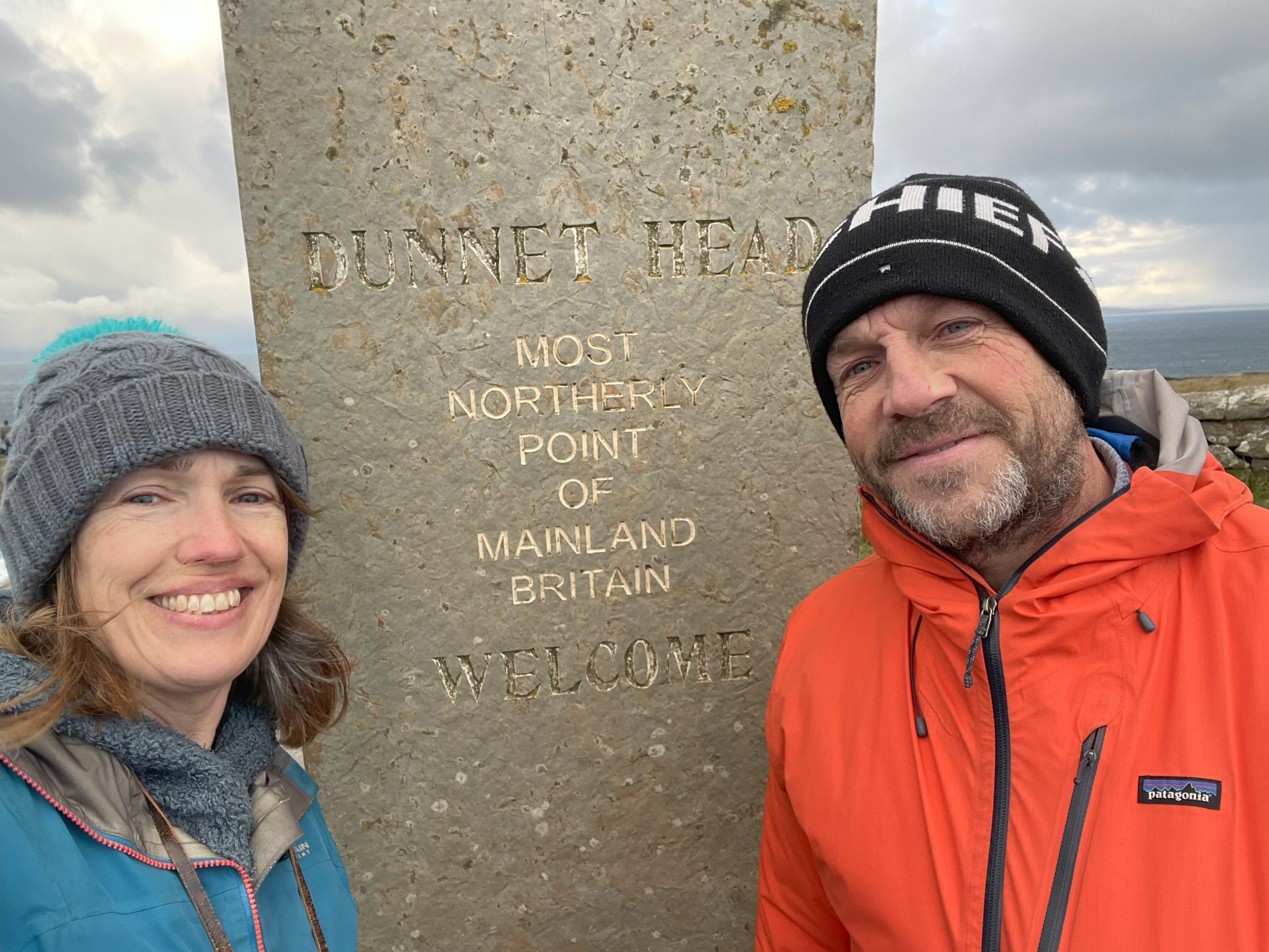 - Posing by the Dunnett Head monument