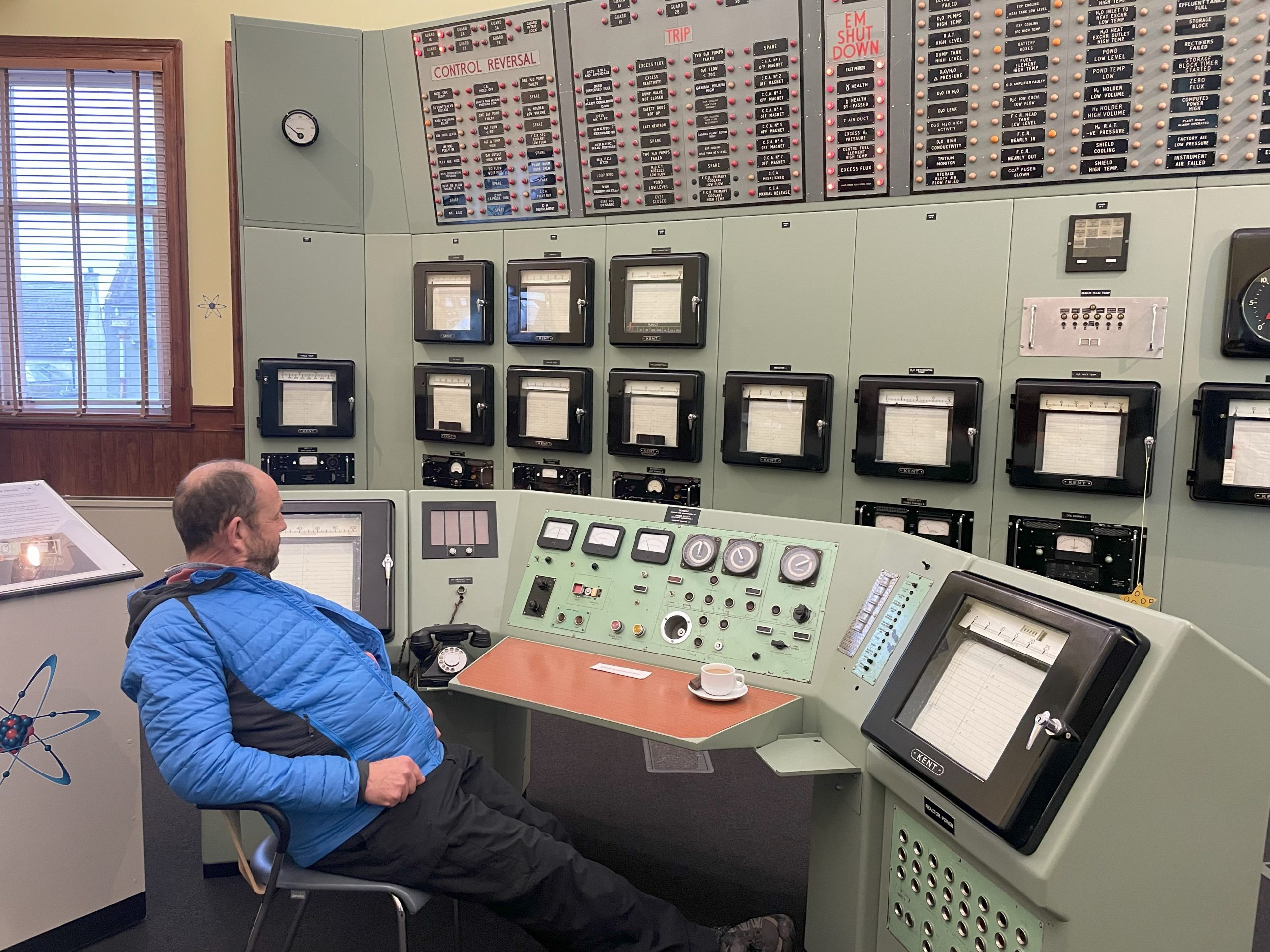 - Paul looking for Doughnuts. This is the original control room equipment from Dounreay