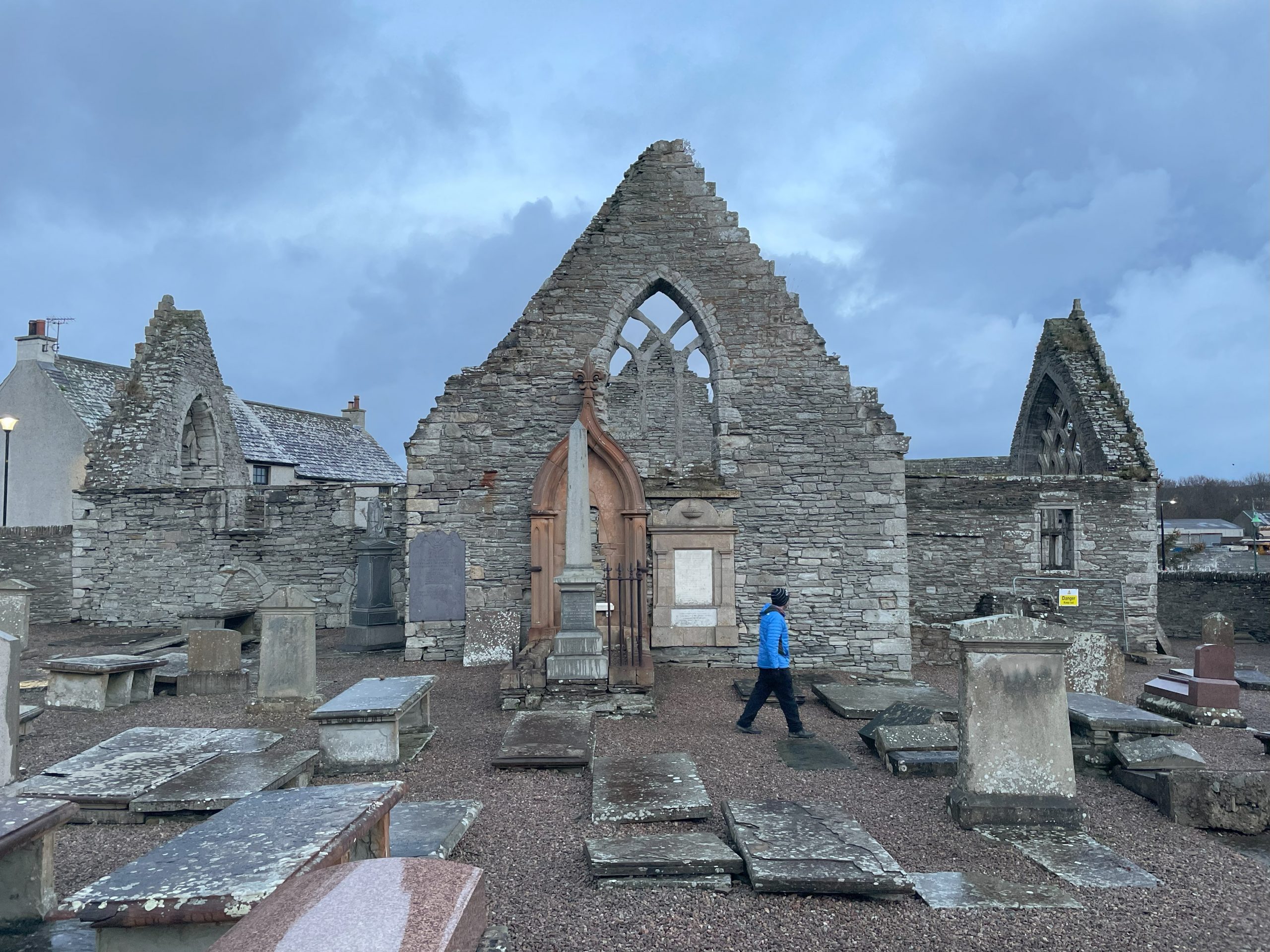 The next stop was Thurso. It’s the larges town on the north coast of Scotland but felt quiet and gloomy in the cold weather. We popped to the fishmonger and picked up some crab, took a walk along the seafront and wandered back through the town centre towards the ruins of St Peter’s Kirk.