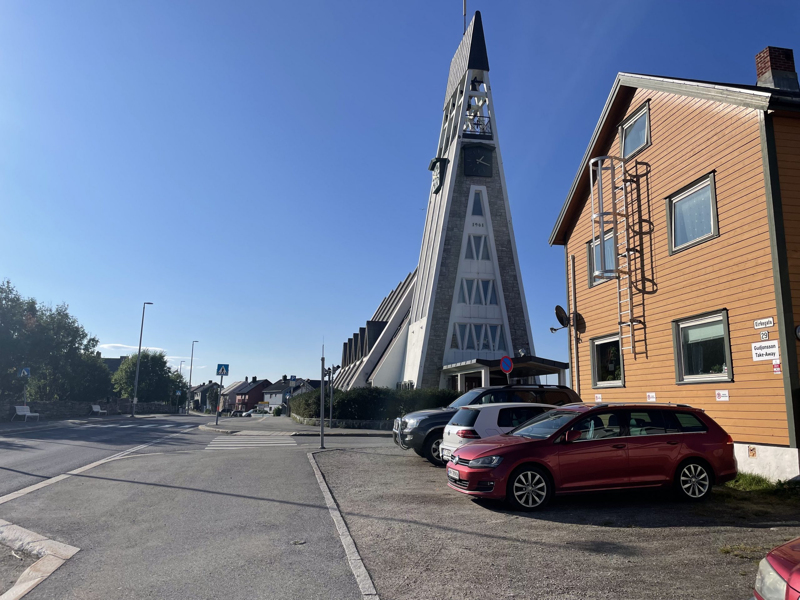To this day I’m not sure why we didn’t just pop down to the official parking area which I am sure would have been perfectly fine. But before we knew it we were driving out of Hammerfest and south again. This happens sometimes, a scout around for the right spot leads us away from the place we intended to be. We missed out on a couple of attractions I’d been interested in (the Royal and Ancient Polar Bear Society – neither royal or ancient but it sounded like fun). Maybe we’ll be back one day for a longer visit.