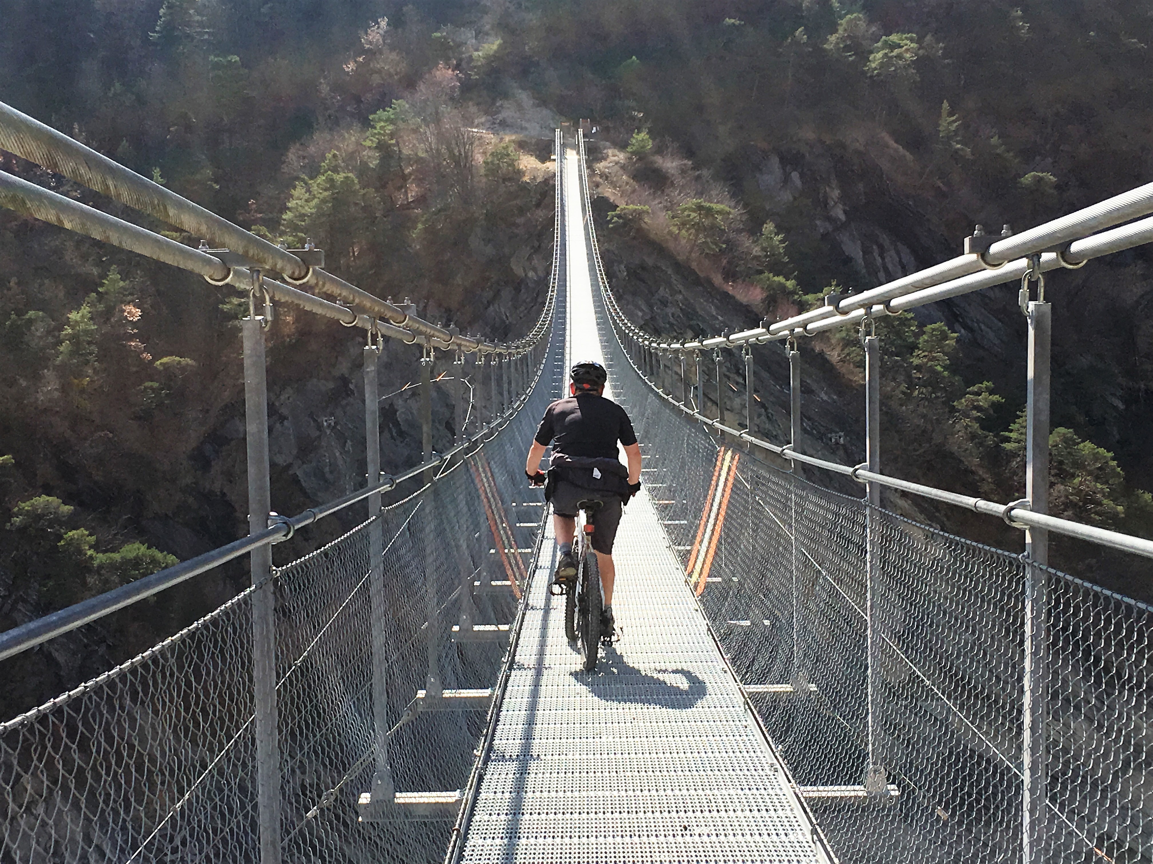- Cycling the suspension bridge. According to the signs it was capable of taking 800 people, but I don’t think they would all fit.
