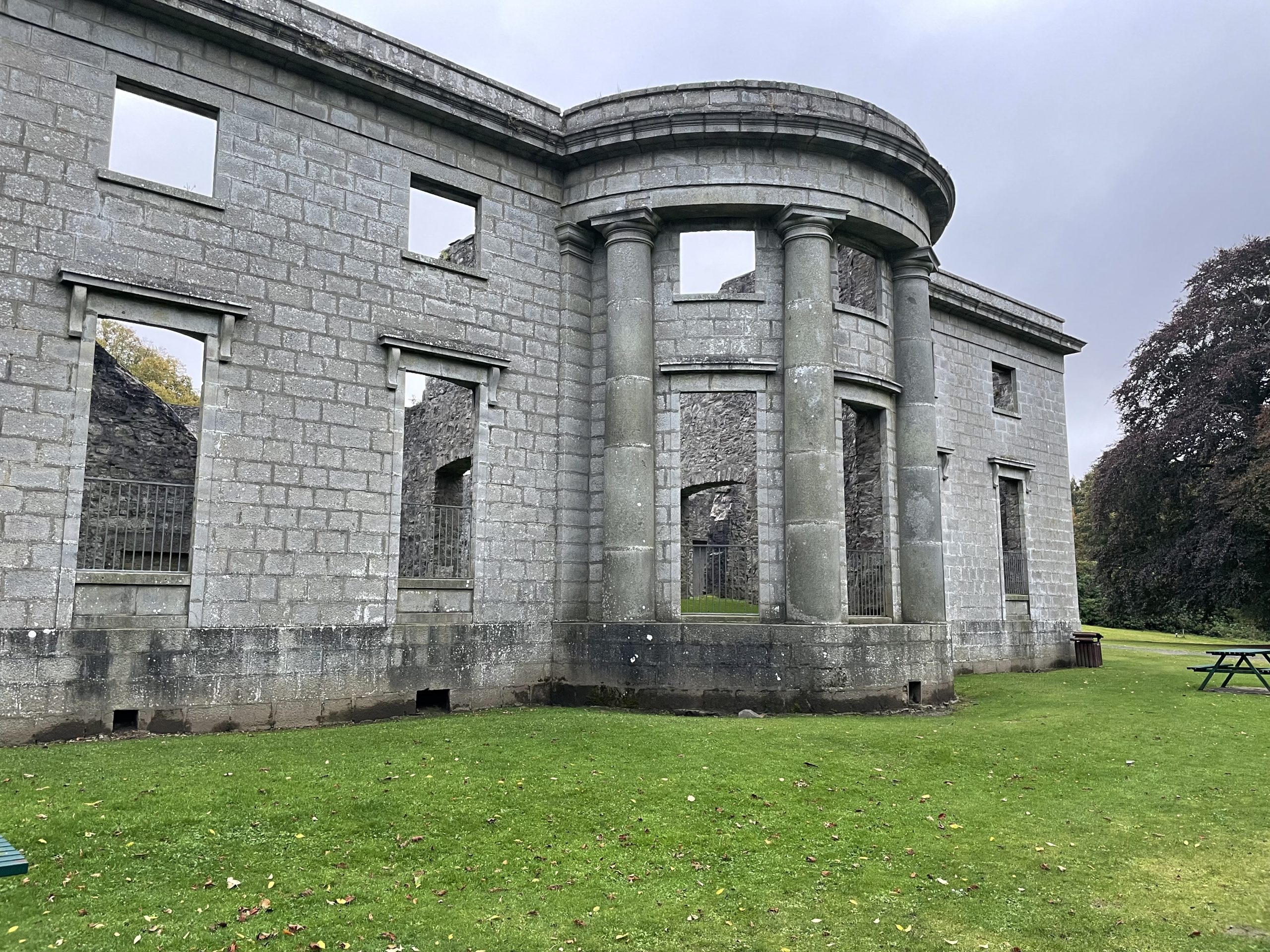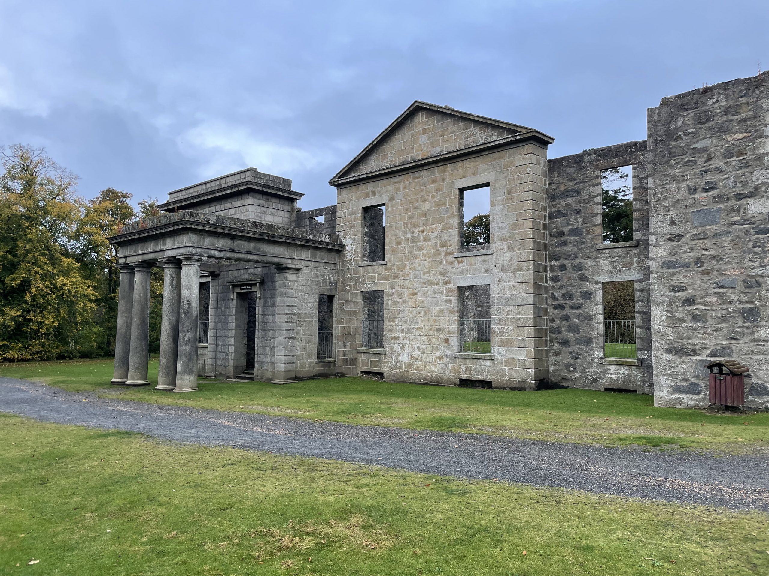 The park also includes the ruins of Aden House which was abandoned after use as a barracks during World War II. Like Haddo House, the cost of maintenance and restoration after the war became too much. But this house was gutted and left a shell.