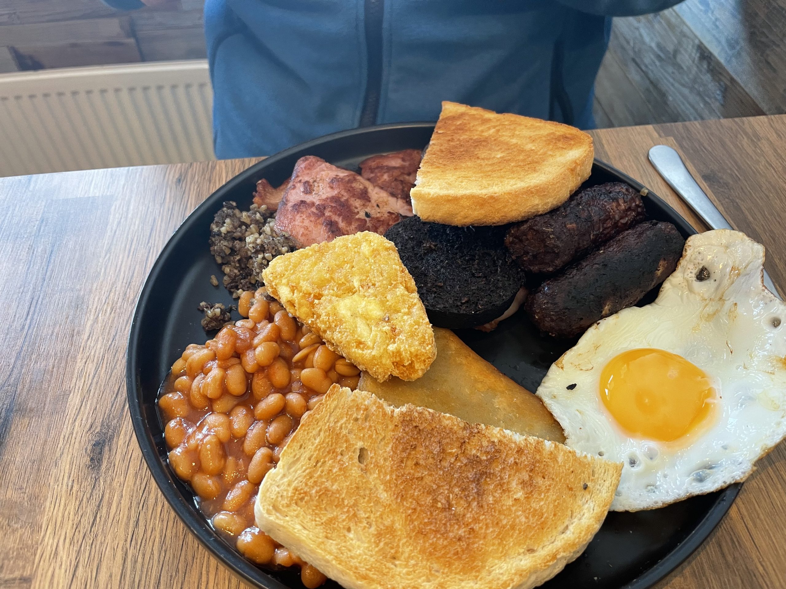 We were so early that the cafe wasn’t even open yet. When the gates were finally swung wide I popped in to pay our parking donation. They put it in an envelope with our registration on it. A browse of the breakfast menu was tempting enough that we went back in a few minutes later to have a lovely breakfast. With Paul a fan of a fry up, and me less so, it’s always nice to find somewhere with a few alternatives on the menu.