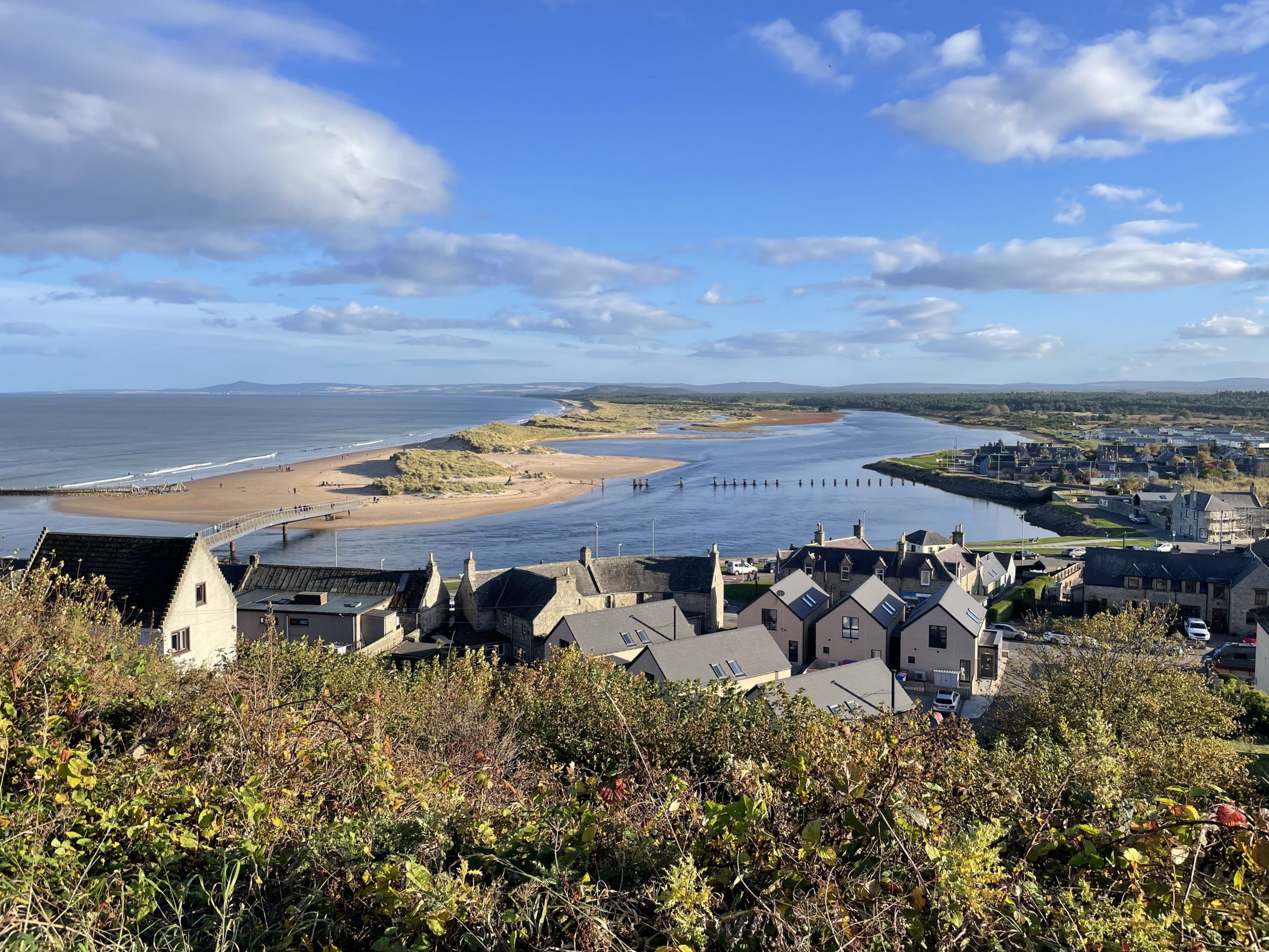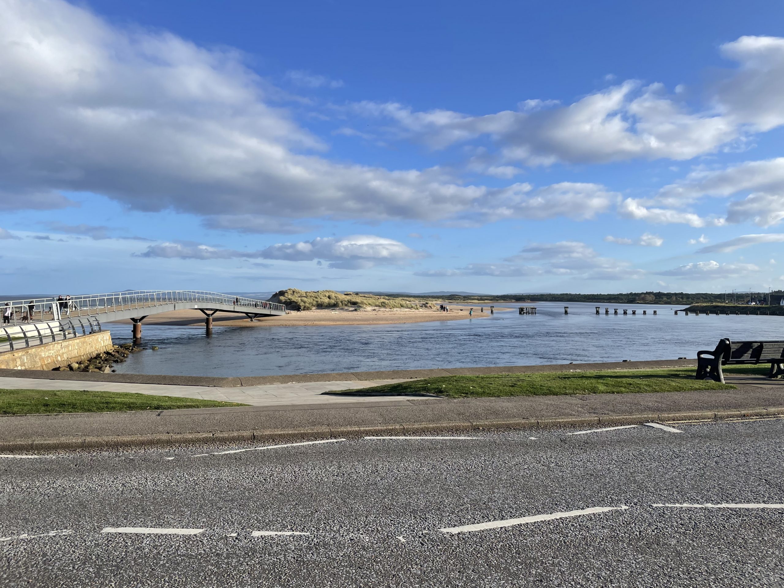 It was too nice to sit in the van and so we walked in the other direction, around the coast to the harbour and the impressive new pedestrian bridge over the River Lossie. The remains of the old bridge, which only closed in 2019, can be seen. It must have been a long walk across to the sand and dunes of the East Beach. On this gorgeous October afternoon there were swimmers in the river braving it’s strong currents. We sat with a gorgeous ice cream from Rizza’s and watched everyone enjoying themselves.