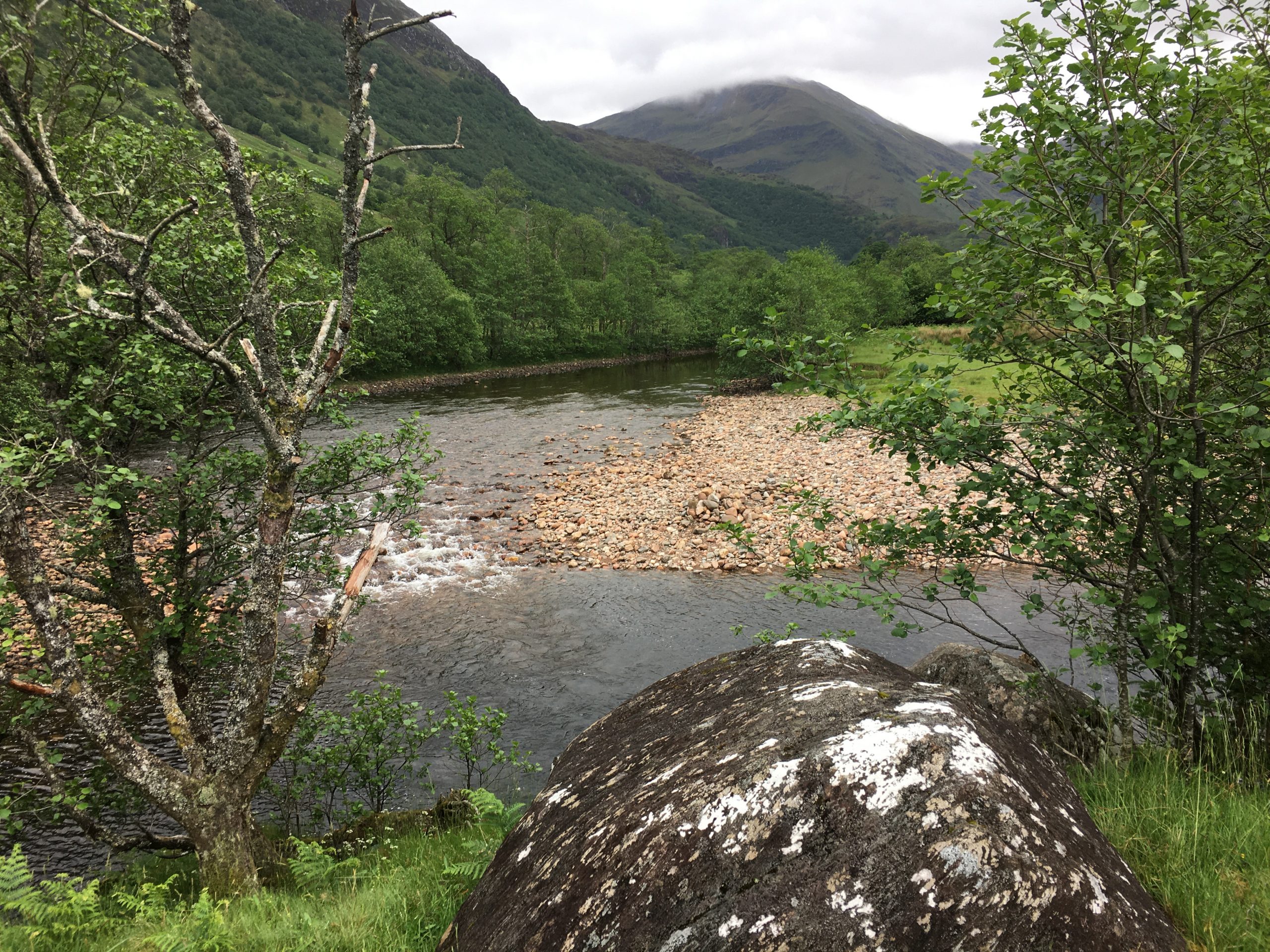 The weather grew increasingly unsettled while we were here, and yet again we didn’t make it up Ben Nevis (the next time I go up the Ben has to be via the CMD Arete on a glorious day, so I’m saving myself). But we did enjoy walking and mountain biking in the glorious surroundings, watching the mountains and the clouds, spying walkers on the path ascending the first stage of the route up the Ben, and contemplating the reason for the occasional helicopters hovering over the hillside (hopefully on exercise). In the forest we heard the sounds of cuckoos and everywhere was full of the sound of water and rustling trees.