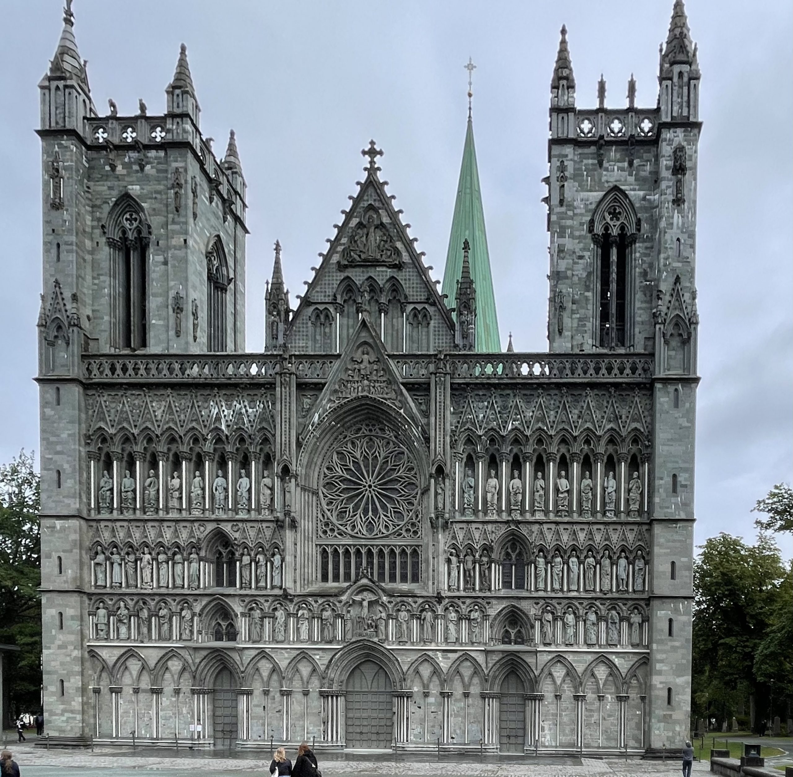 We continued along the river to Nidaros Cathedral – the most northerly Gothic Cathedral in the world. Nidaros was the original name for the city of Trondheim and when the cathedral was built it was the capital of Norway. Like many gothic cathedrals it took a long time to build – from 1070 to 1300 – with generations of artisans working on it. Maybe it’s because I’m British and have seen too many gothic cathedrals (I lived in Salisbury for a few years) but it wasnt impressive enough to tempt us to pay for entry.