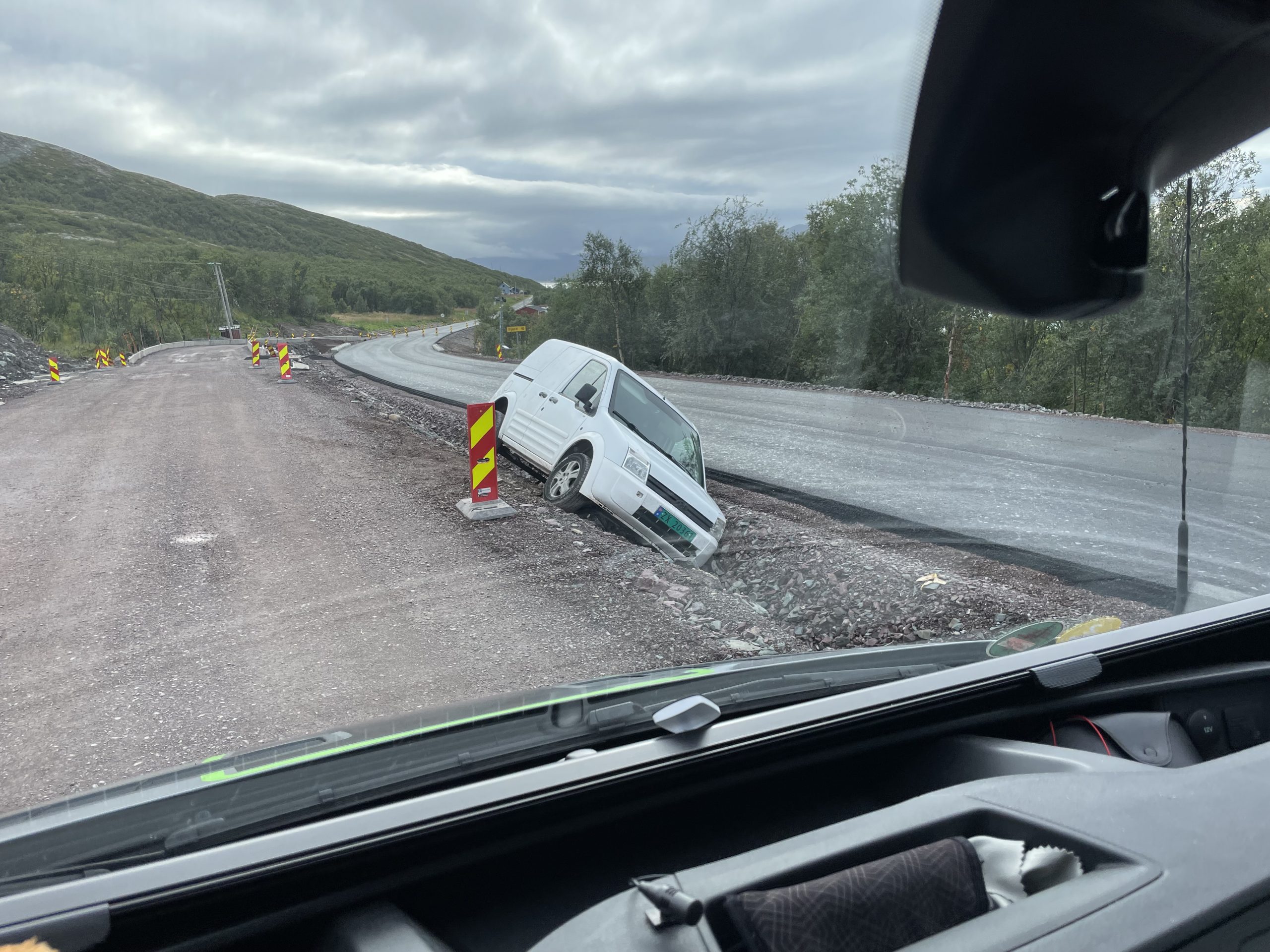 - Roadworks are pretty common here. This van somehow got grounded. Maybe they missed the diversion signs.