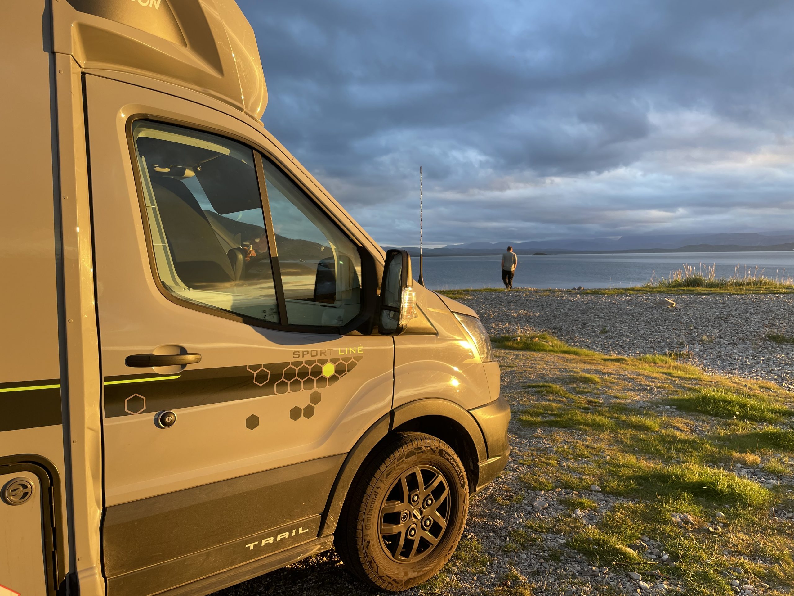 Back at the van we thought we might stop here to watch the rugby but the reception was quite poor, so we continued further south until we had a decent signal. This happily coincided with a rest area next to a large pebble beach where we pulled up and got the laptop out for an evening of watching the Red Roses.