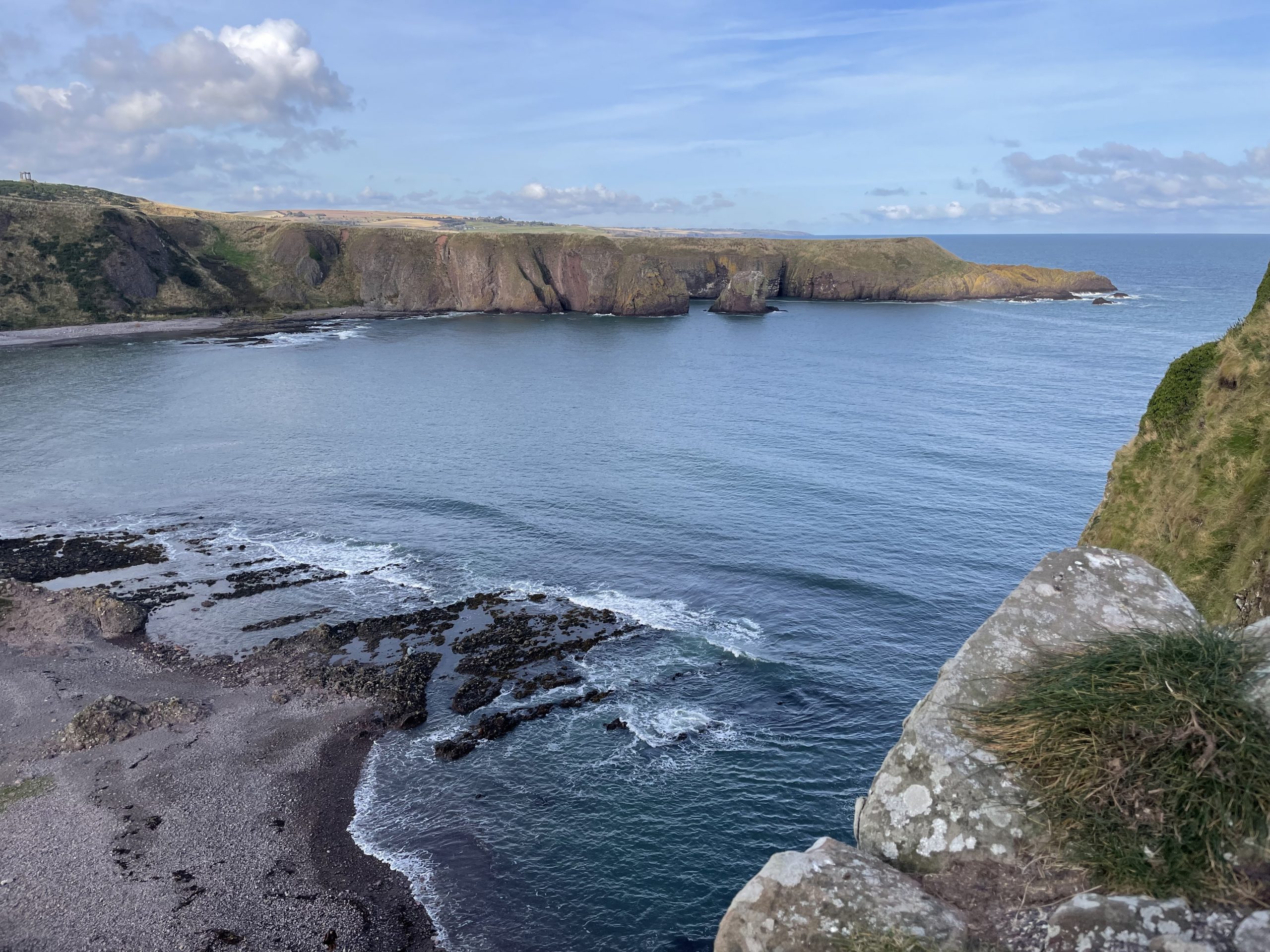 We ended up deciding that the castle was best seen from the clifftops, especially after realising that we couldn’t get in for free using our Historic Scotland membership. We got a great perspective of it’s defensive position by descending steps and then climbing back up again to the castle gate, by which time we felt we might as well pay up for entry.