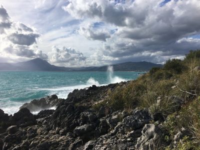 After our brief perambulation we set off towards the coast. We were heading for Sapri, a coastal town behind a wide bay on this most southerly part of the Campania coast. We had a couple of parking spots we had eyed up on google. Initially we parked up along the seafront, where the parking was free in low season, but the waves were crashing over the sea wall and the traffic was quite noisy so we moved for the night to park by the football pitch.