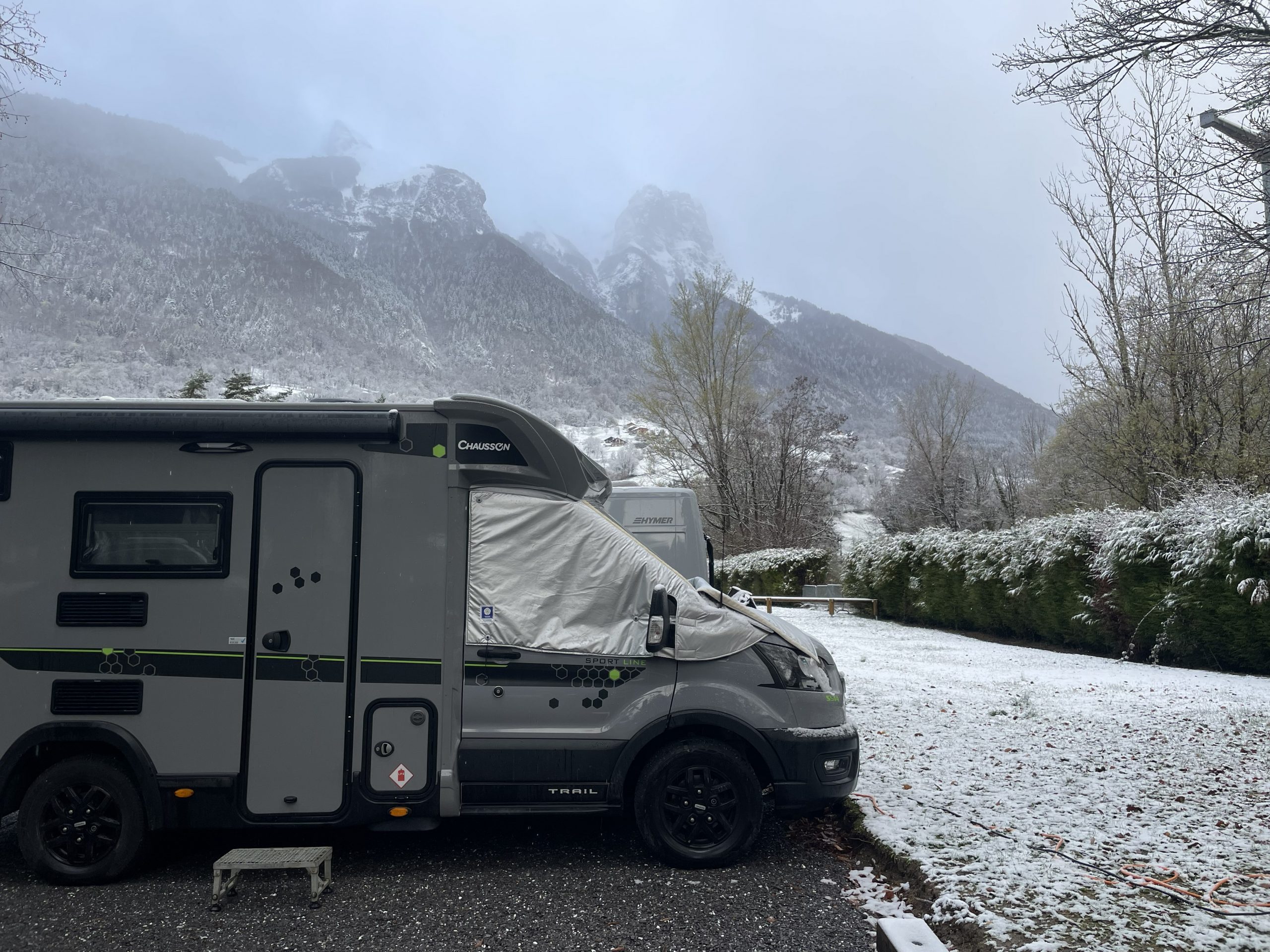 The following morning we’d had a sprinkle of snow. We walked down to the boulangerie in woolly hats and gloves to collect a couple of baguettes and some delicious pastries for our onward journey.