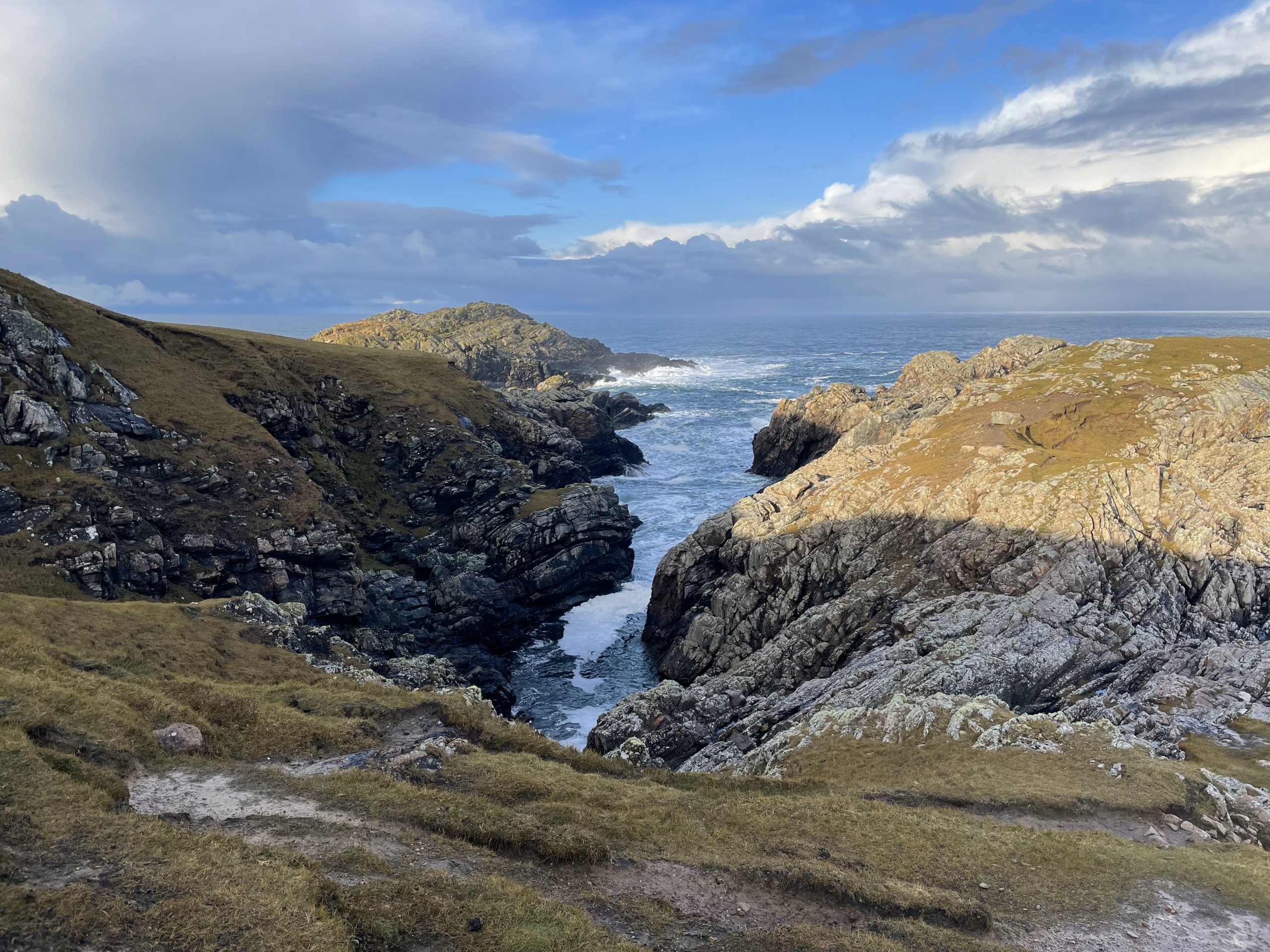 With a quick decision to be made I directed Paul straight ahead down a narrow single track road. A short way down here is the site of the clearance village of Achanlochy. Across Scotland clearances happened between 1750 and 1860, the result of several pressures; increasing industrialisation, agricultural reforms, famine and the decline of the clan system among them. In this area (Strathnaver)15,000 people were cleared between 1811 and 1821. Families were dispossessed of their farm tenancies and moved to the lowlands or coastal villages, often into some of the ‘planned towns’ we had seen earlier on our trip. Others had their emigration to America financed by their landlords.