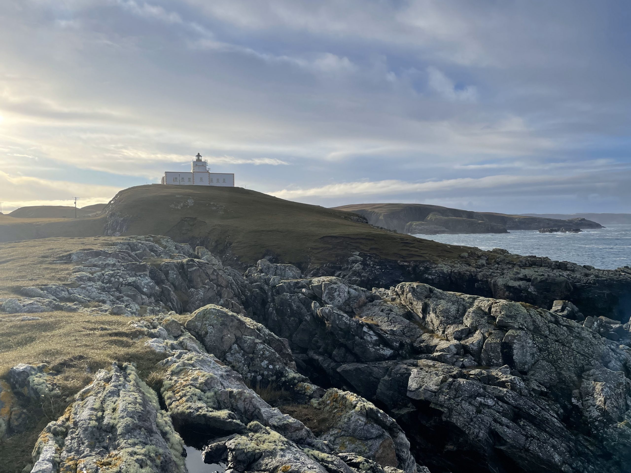 We stopped on a car park just off the A836 near Strathy Church. We were expecting a lot of rain the following day so wanted to get out on the bikes while we had the chance. The bike ride north to Strathy lighthouse was undulating and passed a number of smallholdings until it finally reached the parking for the lighthouse and associated self catering cottages.