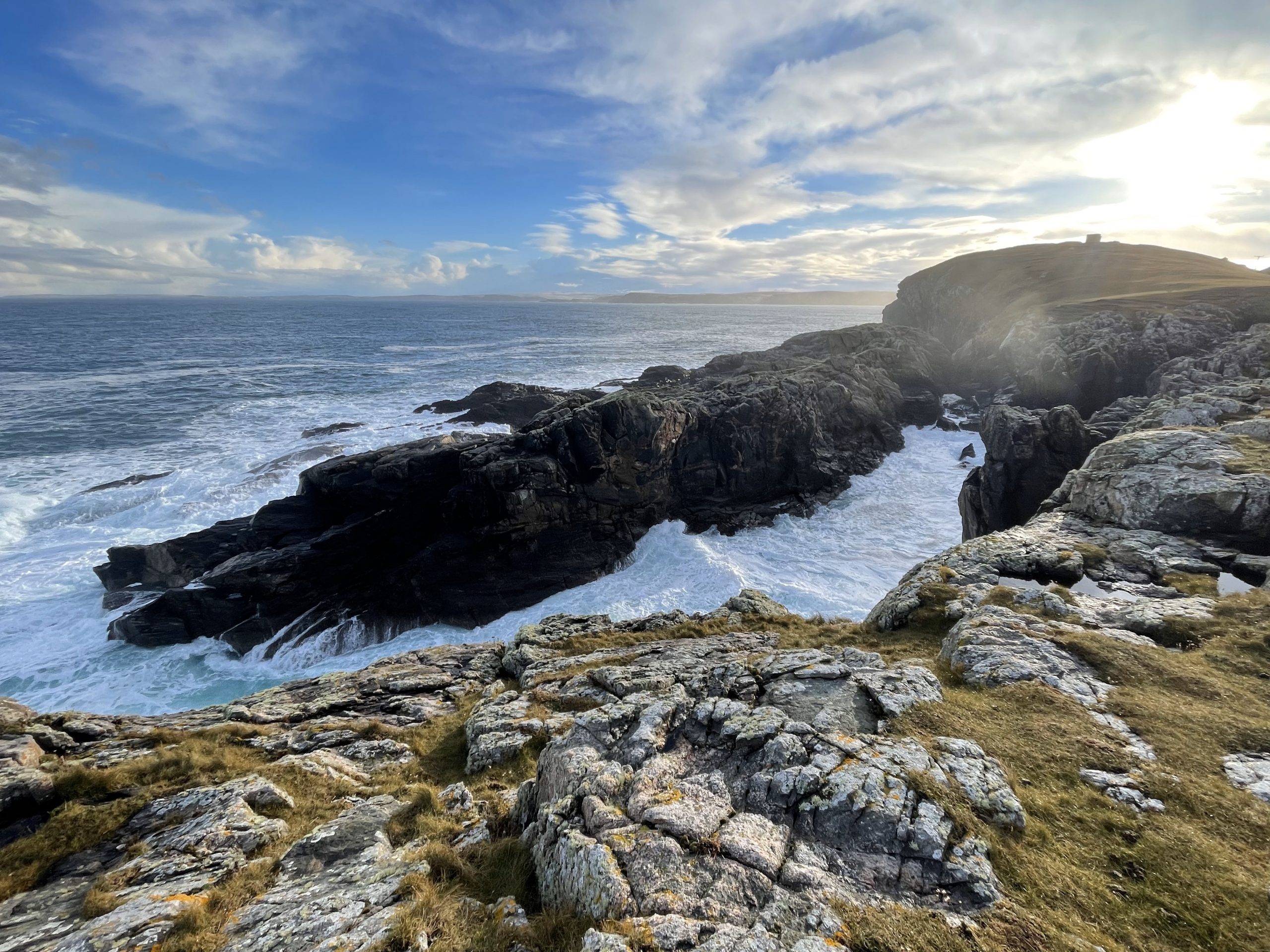 After visiting Dounreay we drove westwards along the A836. The views were becoming more desolate, this is theĀ edge of the Flow Country. We really want to drive inland through here but don’t have enough time on our return home. Every now and again we catch distant glimpses of snow covered mountains, probably Ben Loyal and maybe Ben Hope in the far distance.