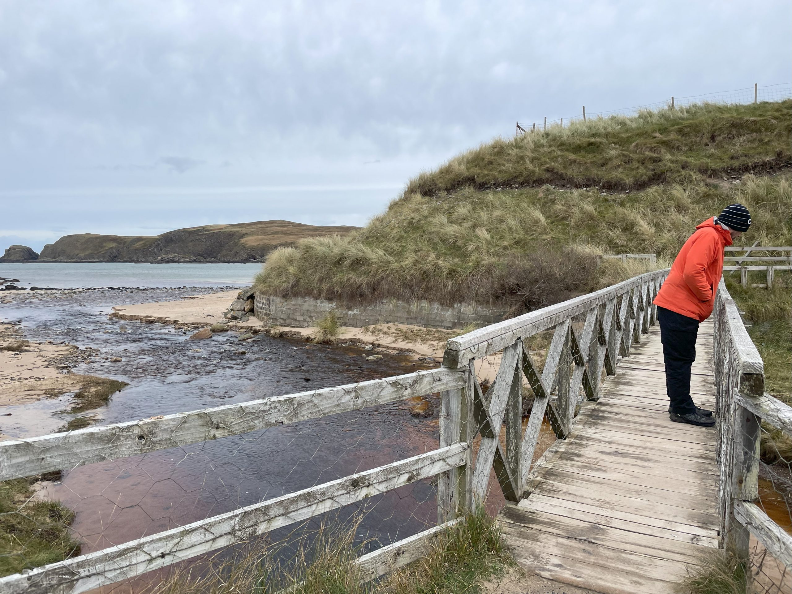 With a Torrisdale Bay walk looking unlikely, we backtracked a short way to Bettyhill. We looked at the campsite but the camping field seemed rather waterlogged (there is improvement work taking place) so we drove through the village to a small car park. No one else was there and it seemed very sheltered which was good news as a storm was expected the following day. We walked in the village to see what it had to offer. There are a few facilities that must serve the local villages; a school and a sports centre/swimming pool, a local shop. The Strathnaver museum was closed, which was a shame as it would have told us a lot more about the Highland Clearances in the area. Bettyhill was one of the resttlement villages for some of the people moved by the clearances and was named for the Countess of Sutherland.