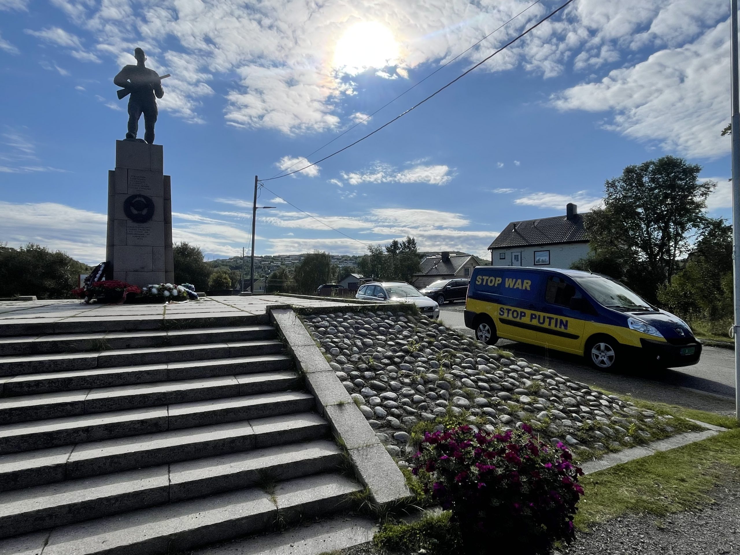 The town has a monument that celebrates the liberation of the town by the Red Army in 1944. The car parked next to the monument marked how few decades it takes for opinions to turn.