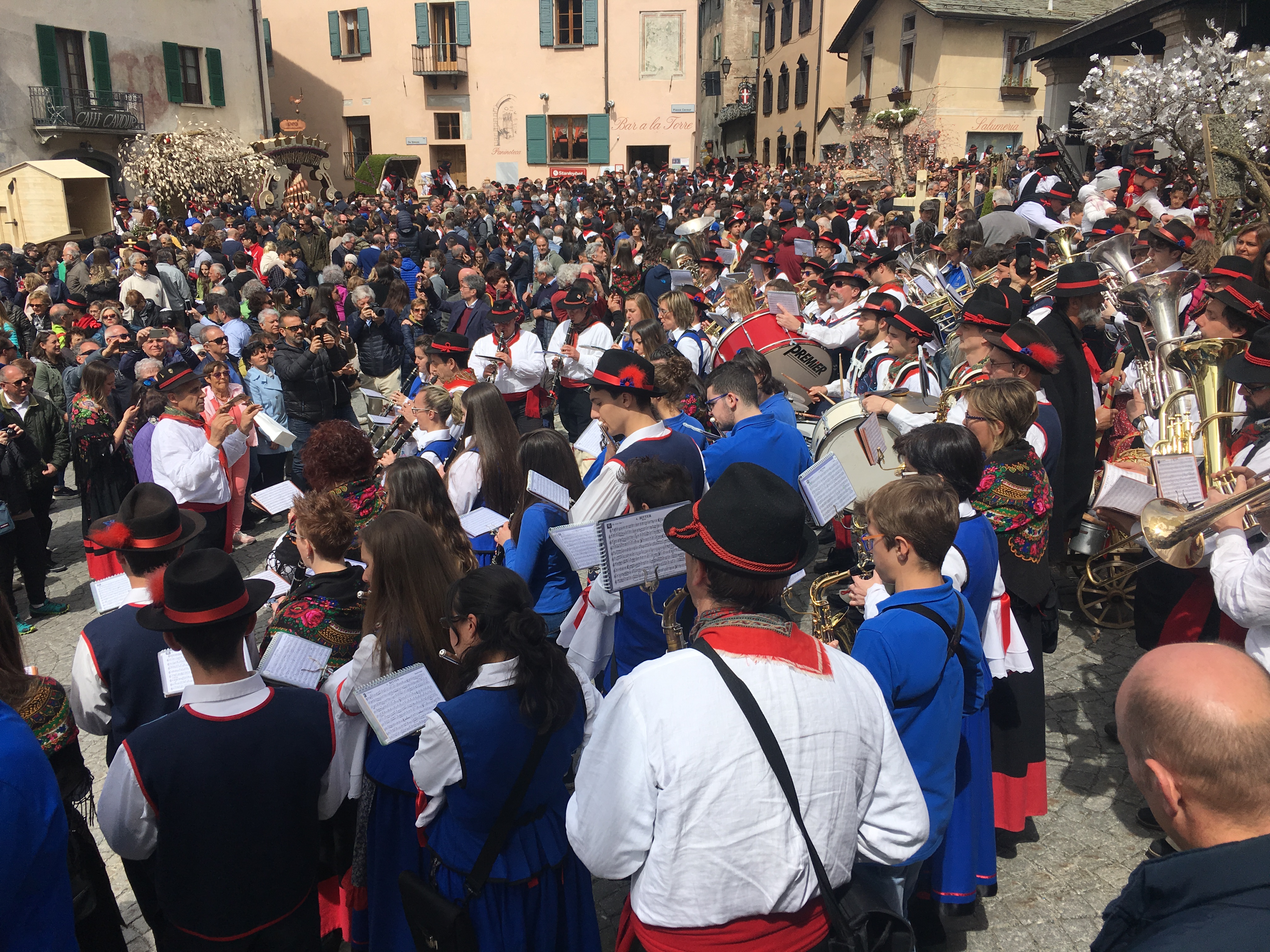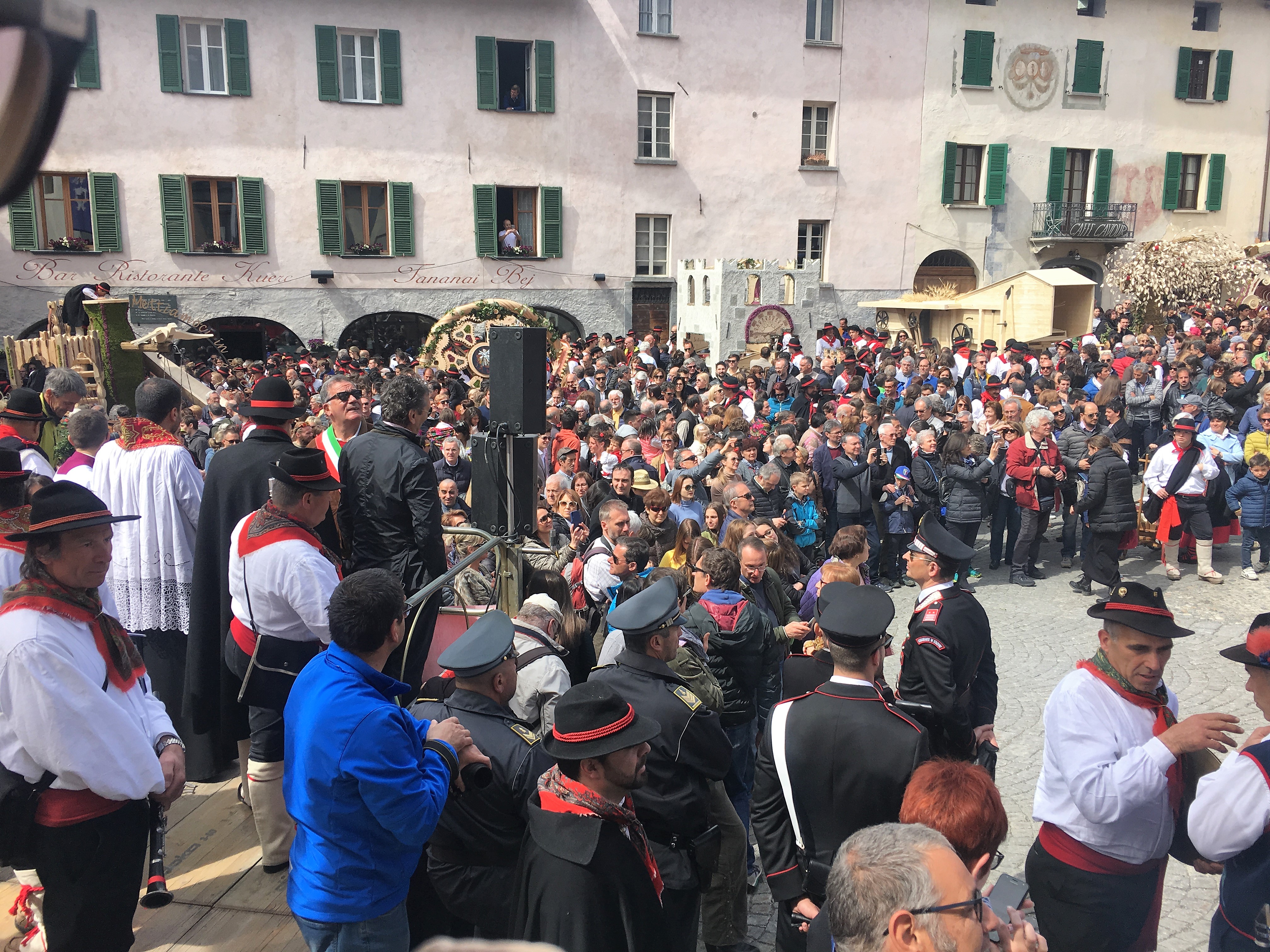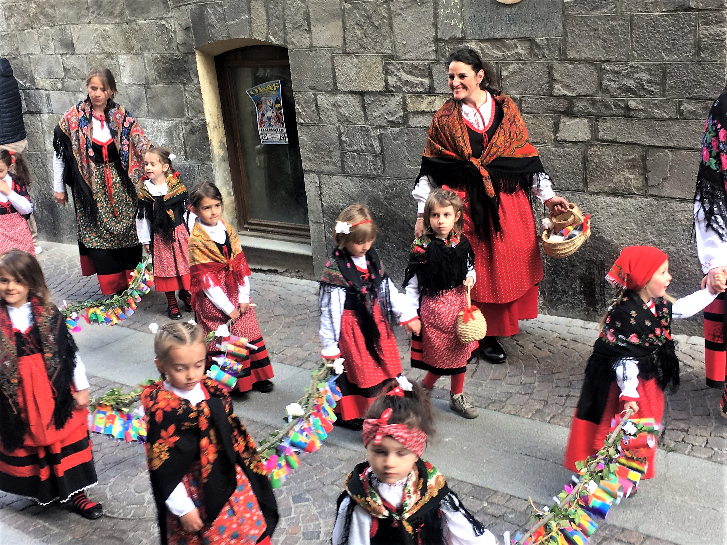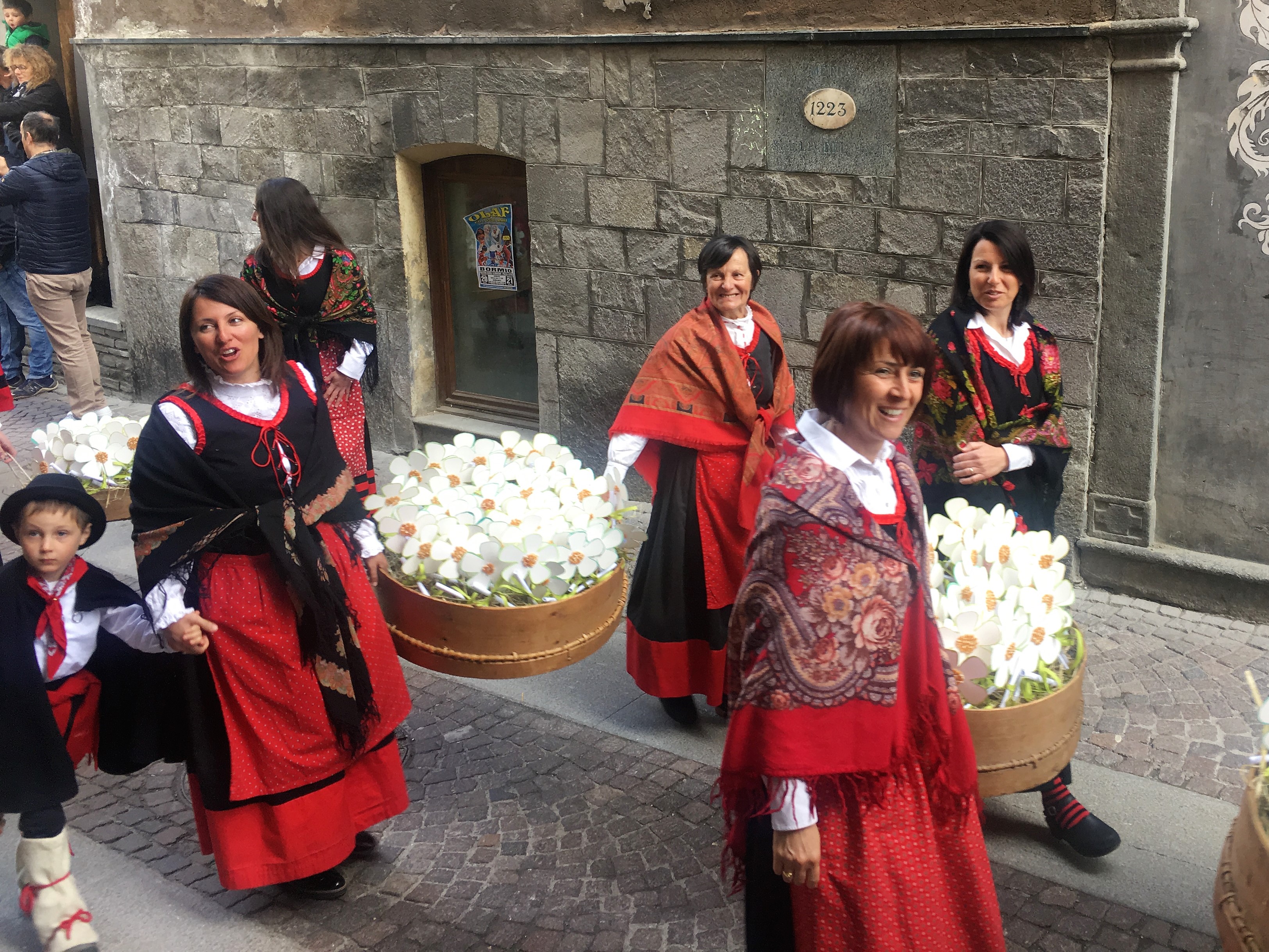 On the Sunday our attention was taken up with the Easter parade so we had little time to think about what next. The Easter parade in Bormio is a traditional affair with each province of Bormio fielding one or more groups. Each group follows a pattern as it parades the medieval town centre, first the babies and toddlers are wheeled through the streets on carts padded with sheepskin or in antique prams.