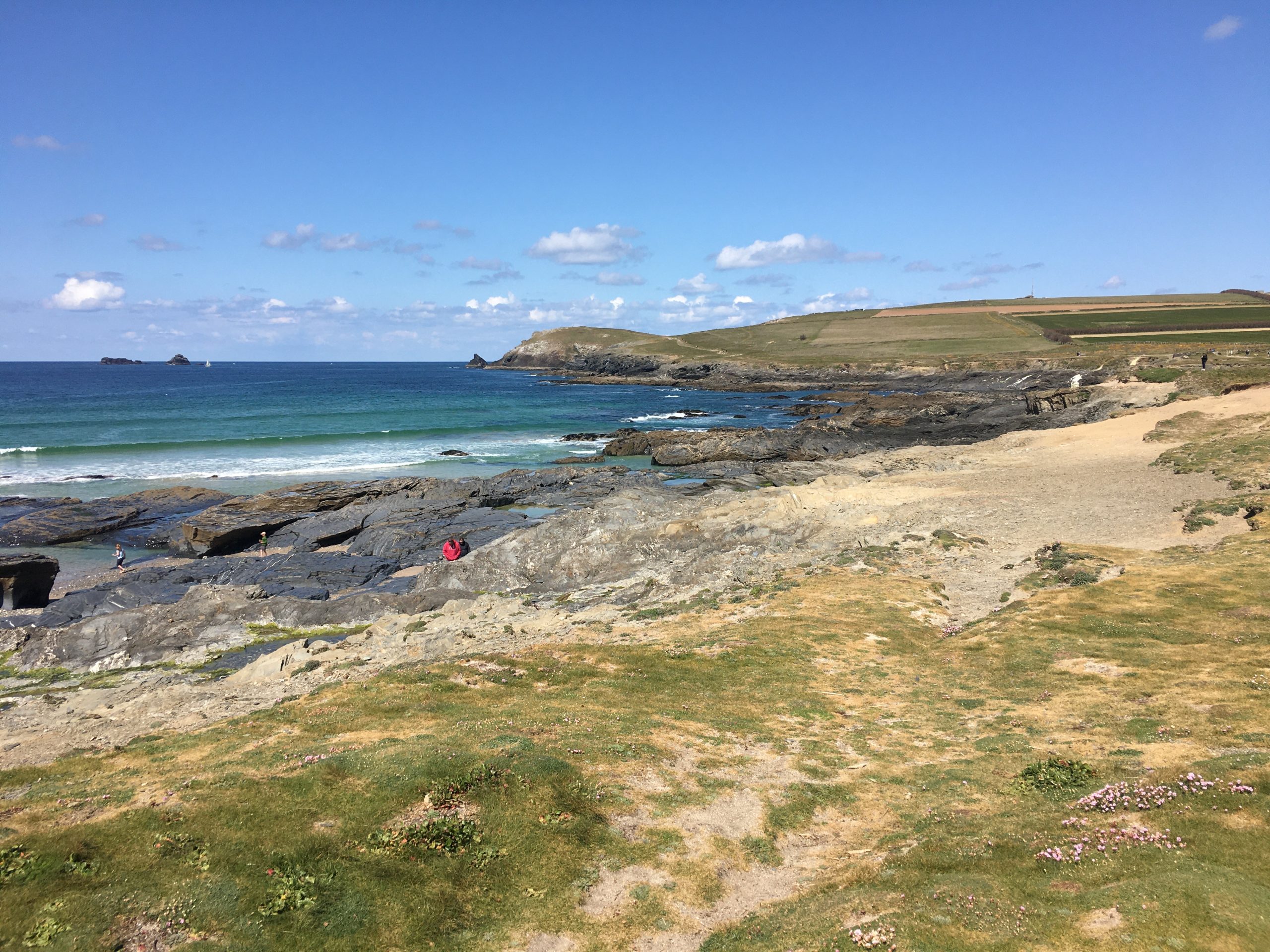 Further south Booby’s Bay and Constantine Bay are contrasting stretches of coast, the rockpools of Booby’s Bay followed by the soft sand of Constantine. We stopped here for an ice cream and watched the beach fill up with tourists enjoying the sun from behind their windbreaks.