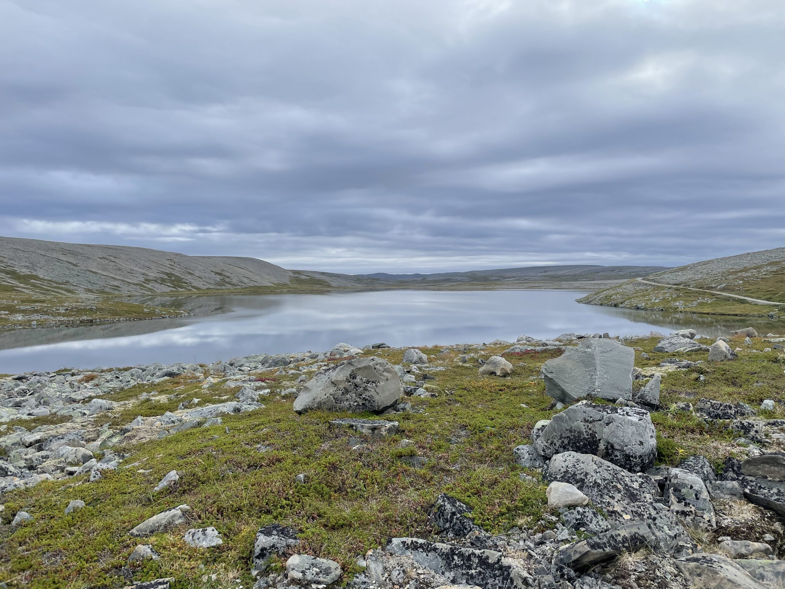 It was a long drive up to the Nordkinn peninsula but it must have been one of the most scenic we’ve done so far. The journey started by following a river with forest on either side of us. As we continued north we drove up out of the tree line onto a wild and open land. There are no trees up here to disrupt the view, just grass and low shrubs across a landscape of lakes and rock. We saw numerous reindeer as well as golden eagles flying overhead, their feathered legs and cruel beaks easy to see through our monoculars. We stopped to try to get photos of the eagles but they were feeling camera shy and disappeared from view.