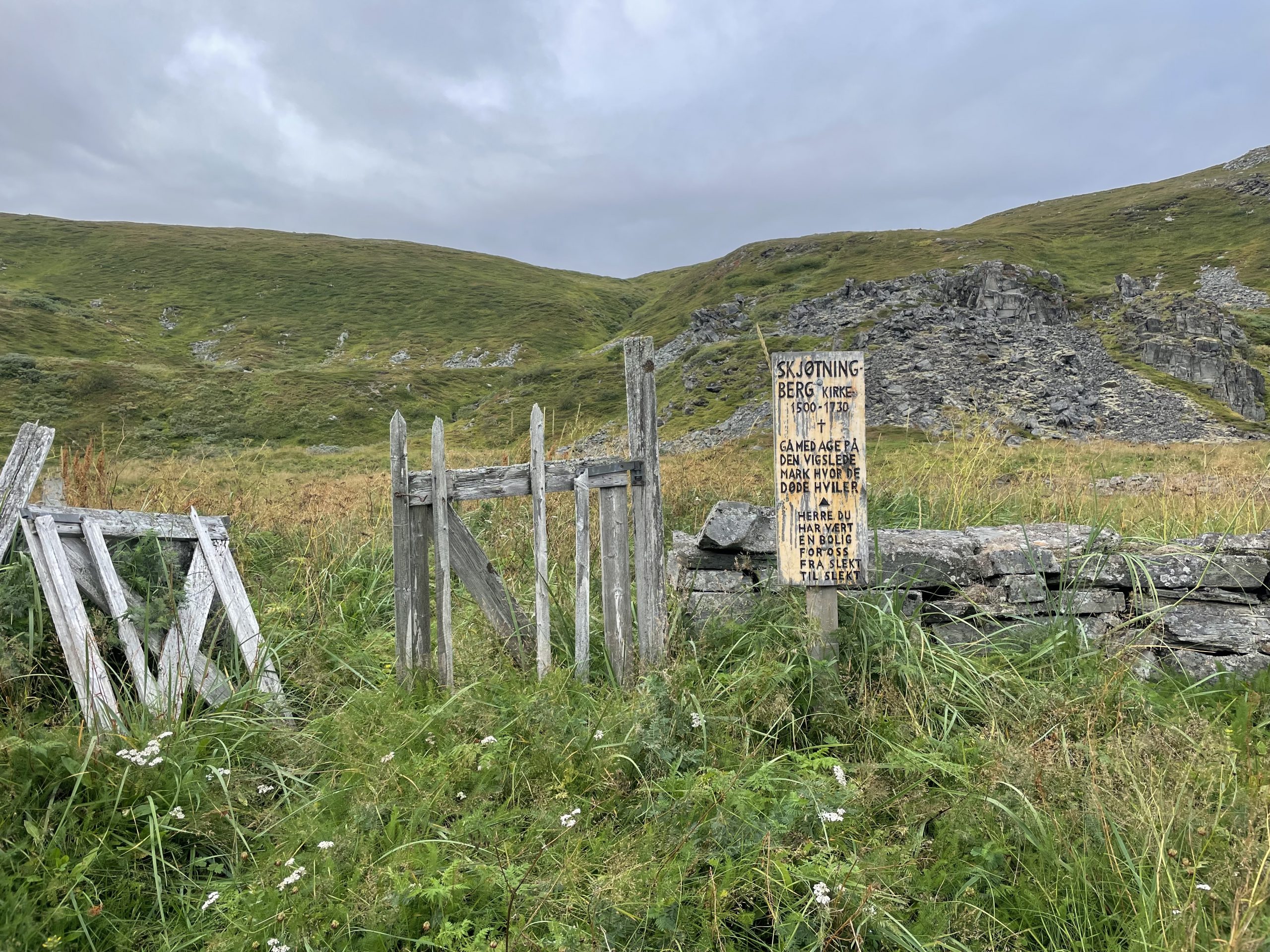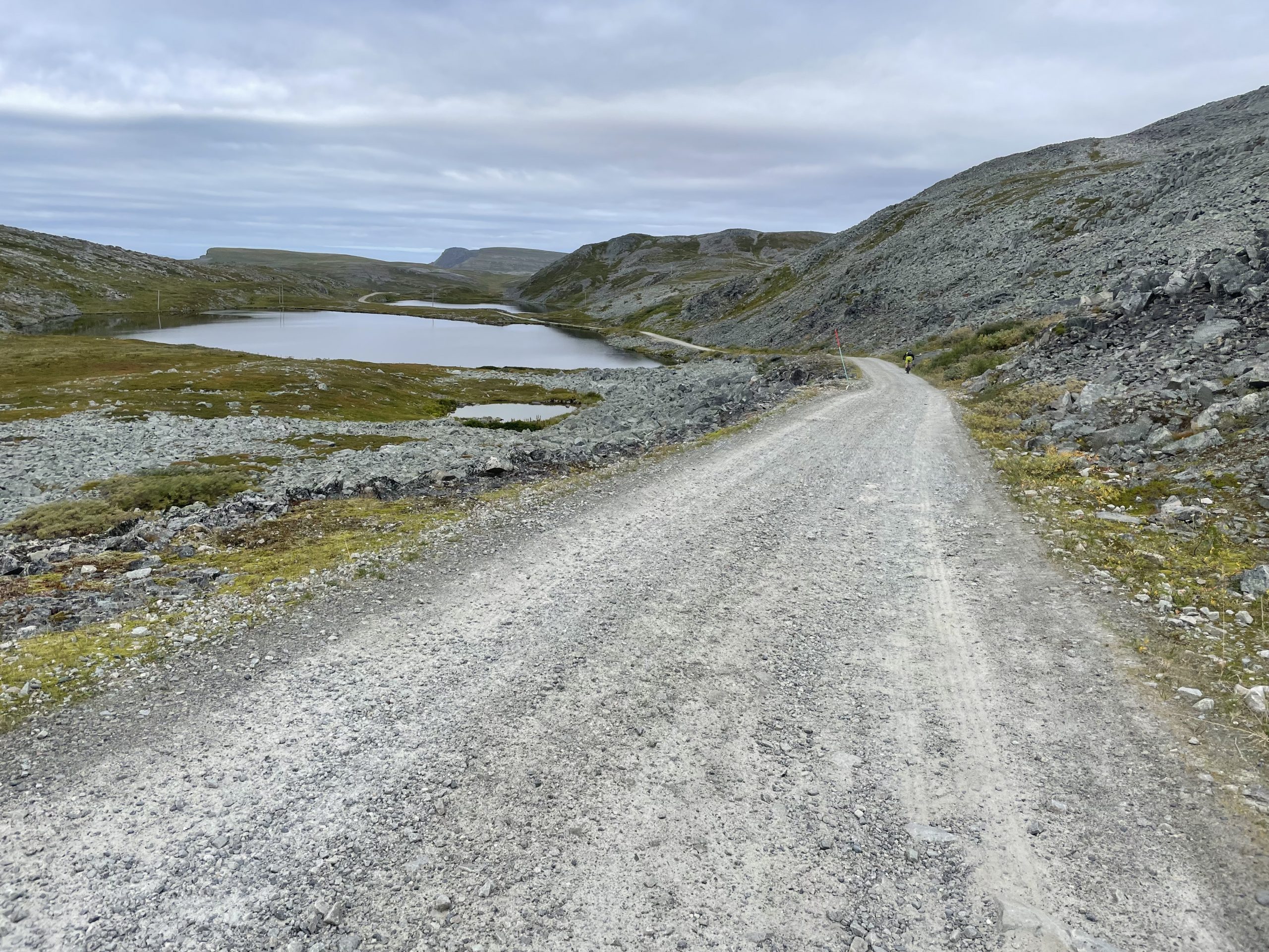 The following morning we go the bikes off the van and headed north over the headland to the village of Skjøtningberg. There is no metalled road, just a stony track, but even so we were passed by more cars than we expected. A few people going fishing in the lakes on the headland, and others visiting the village.