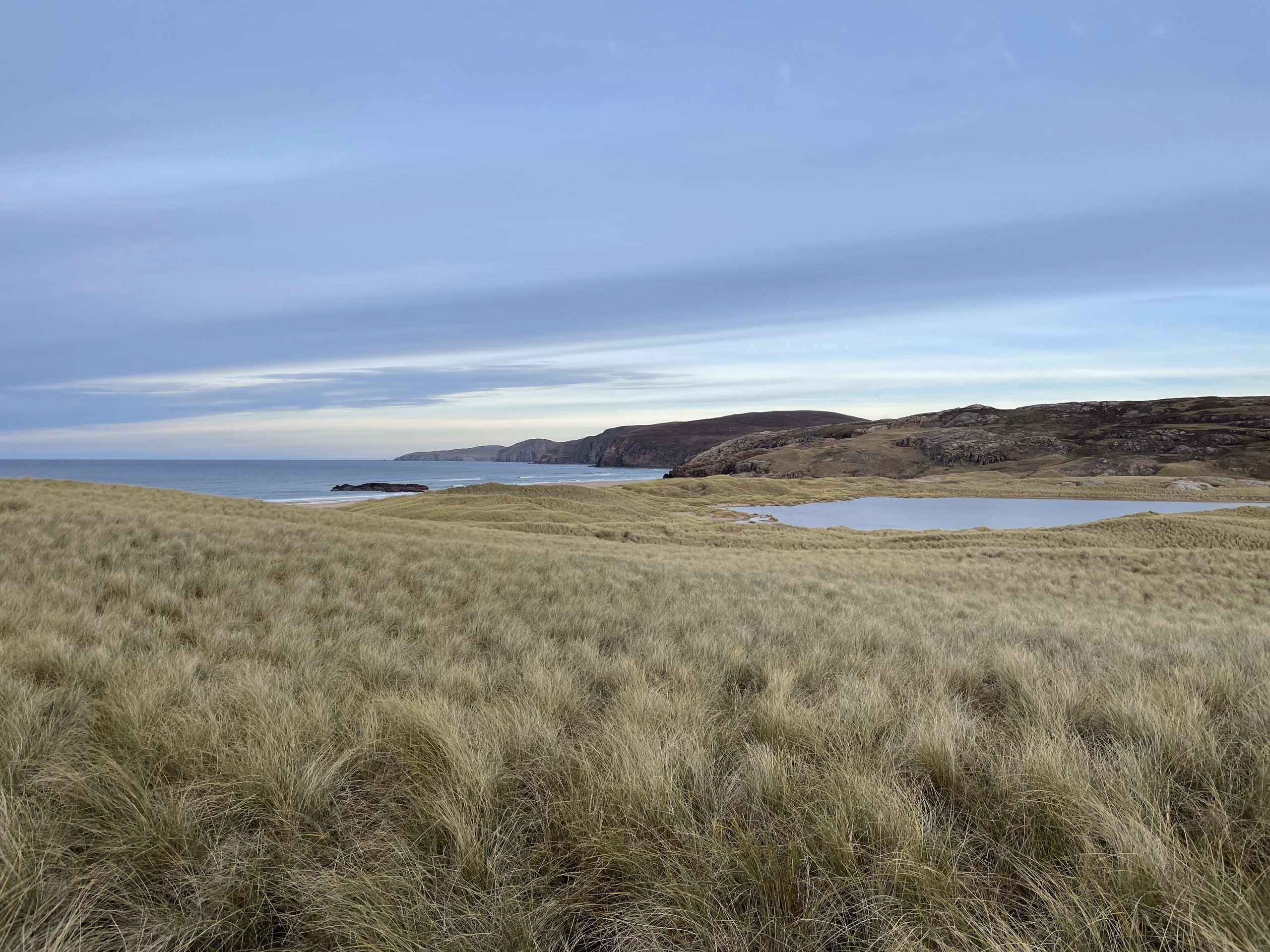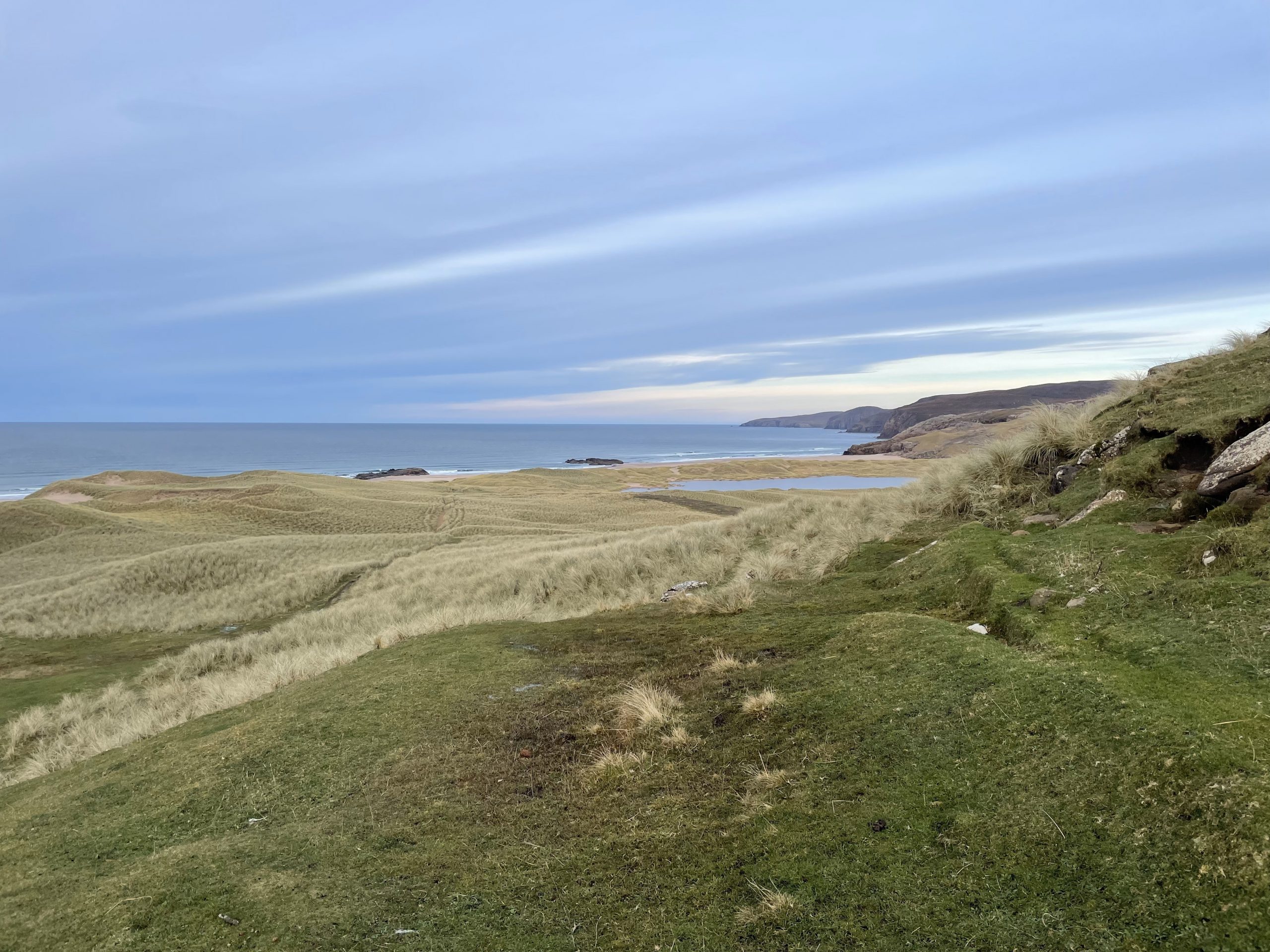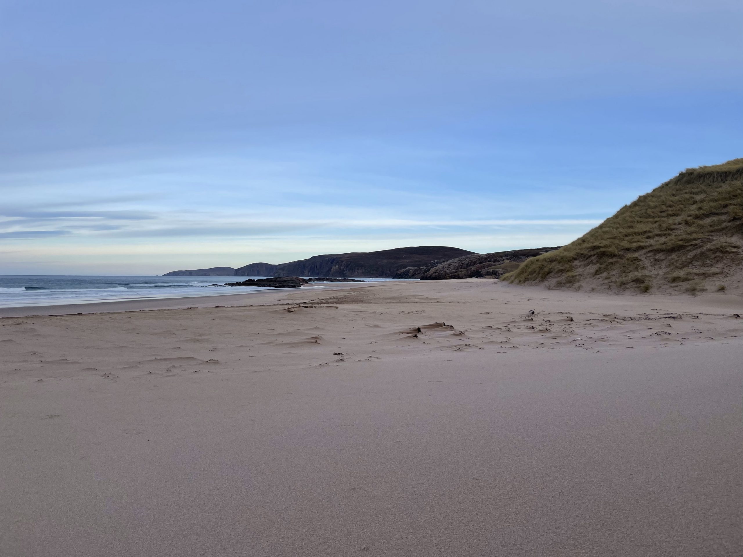 Then we moved onwards to pick up the track that leads to Sandwood Bay. This remote bay cannot be reached by road, the population of crofters who used to live in the area were evicted by the clearances. Strathchailleach bothy is near the bay. It was occupied by a hermit until 1994.but is now a rest stop for intrepid multi day trekkers who are walking the Cape Wrath Trail.