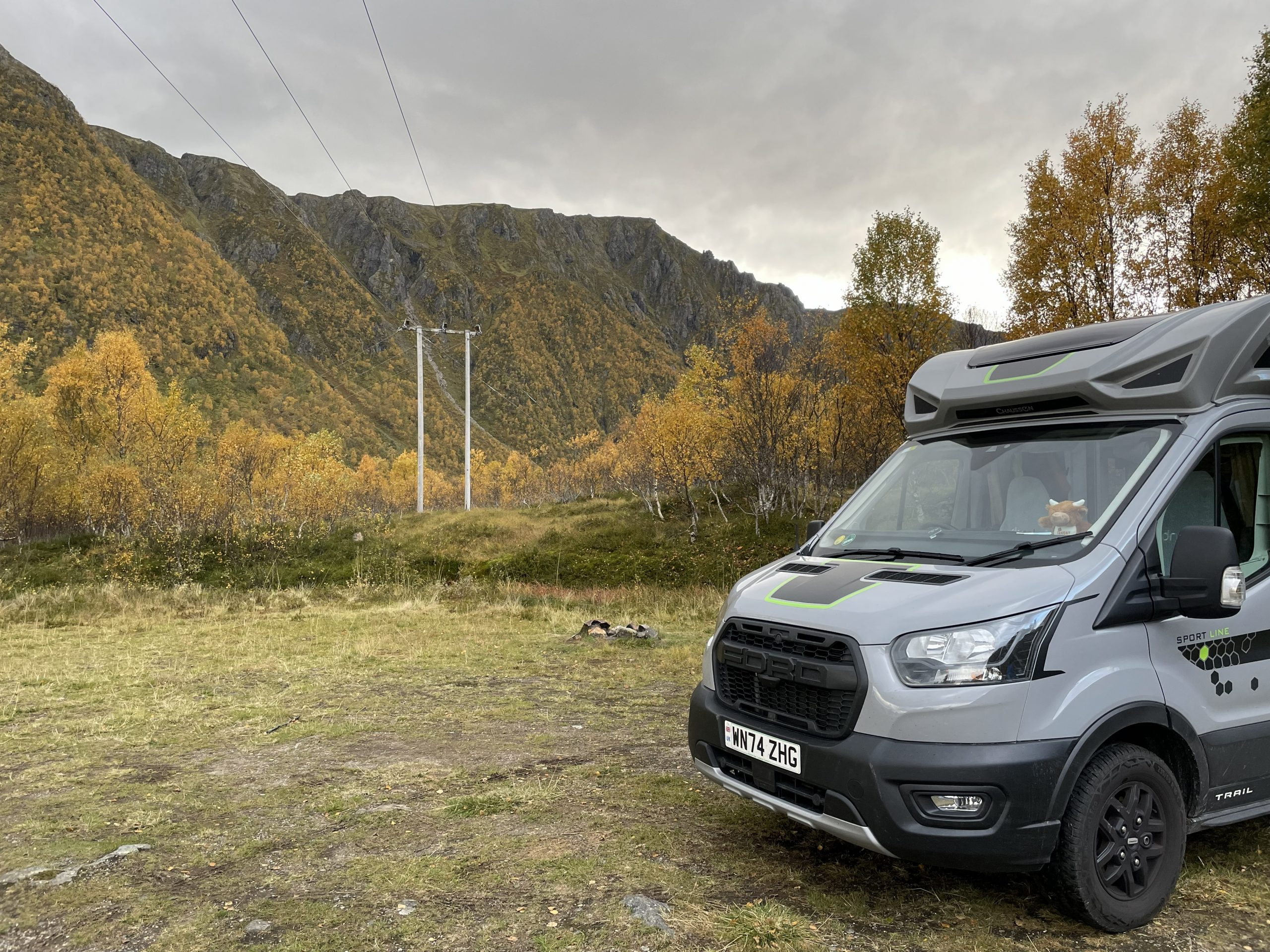 The parking up here was just some rough ground by the small harbour with a neat, clean, toilet block. The only option for payment was VIPPS and no-one turned up to collect any money from a lone grey van in autumn. An honesty box for cash would have been a good idea as payment is used to maintain the community owned harbour.