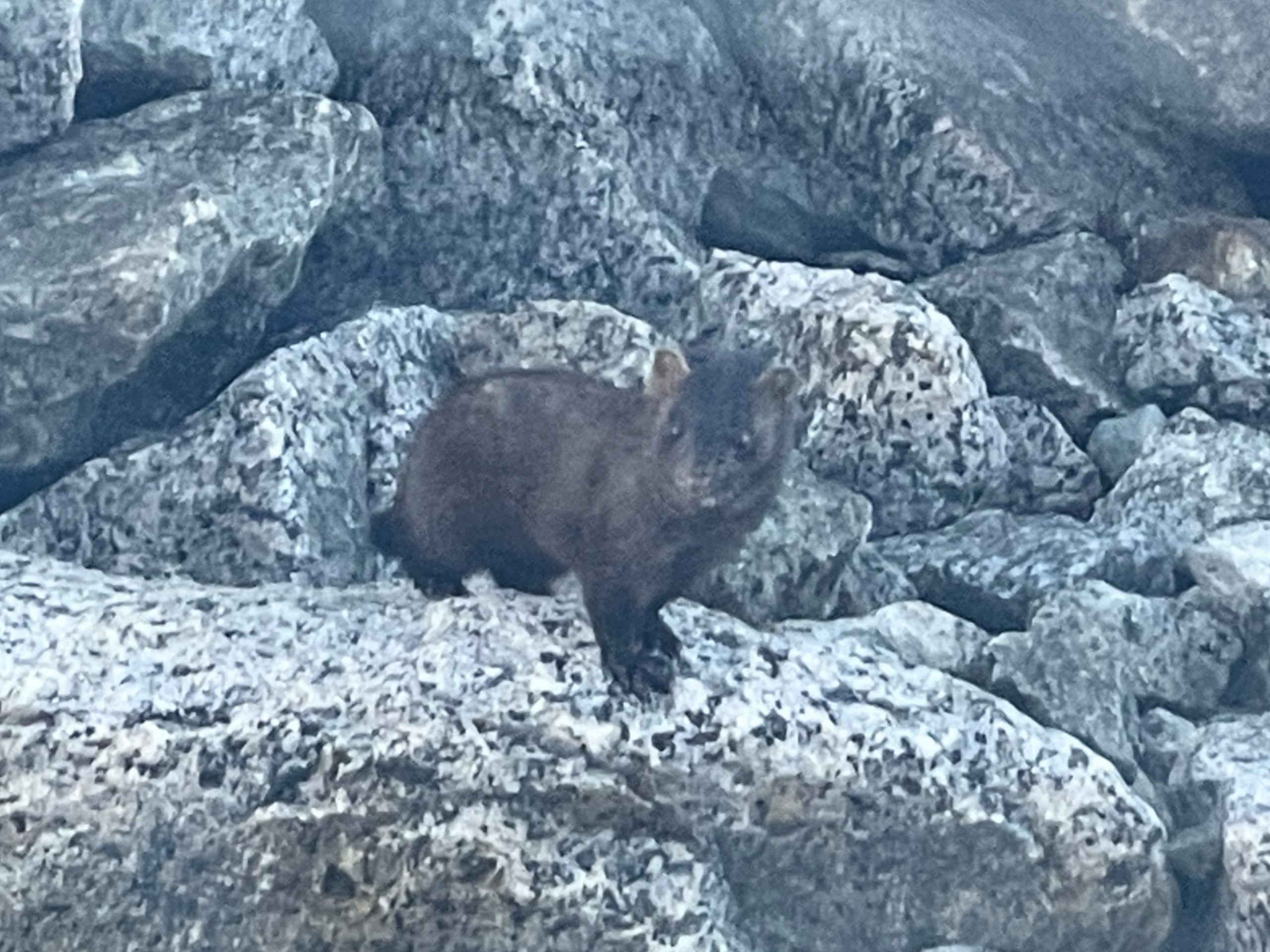 Scudding heavy cloud bought rain showers, but in between we had some lovely blue skies reflecting in turquoise sea. The wind put me off swimming but I could imagine it being a great location for a swim. I watched the skies change as I worked and popped out for a breath of fresh air whenever I had the opportunity. In the jumble of large rocks next to us a small mustelid (maybe a mink?) also popped out every now and again to sample the air and hunt for small sea creatures between the rocks. A tractor dragged up a load of gravel to add to the mound next to the harbour and a car turned up, the occupant attending to his boat which needed a bit of bailing out after the showers. Otherwise this was a quiet spot.