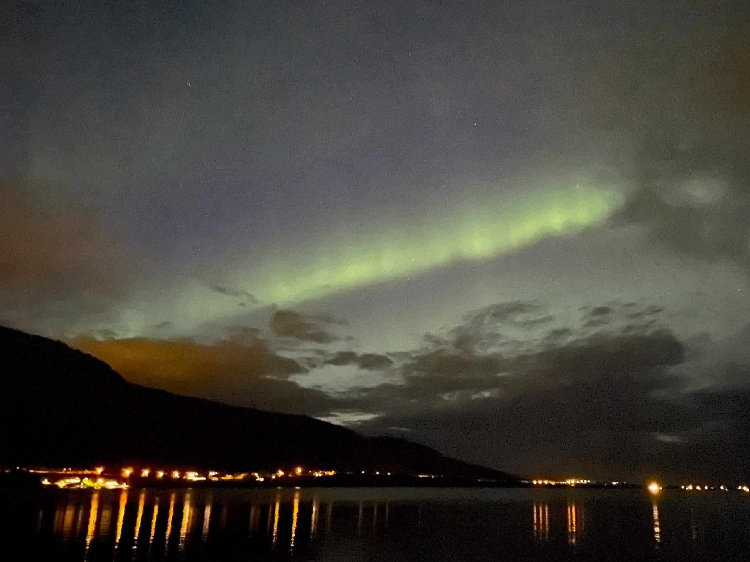 In the evening we could see lights from the homes across the water and the farms nearby. They shone brightly in the otherwise dark skies. Despite the clouds the aurora made it’s presence felt as a pale glow between the clouds on both evenings.