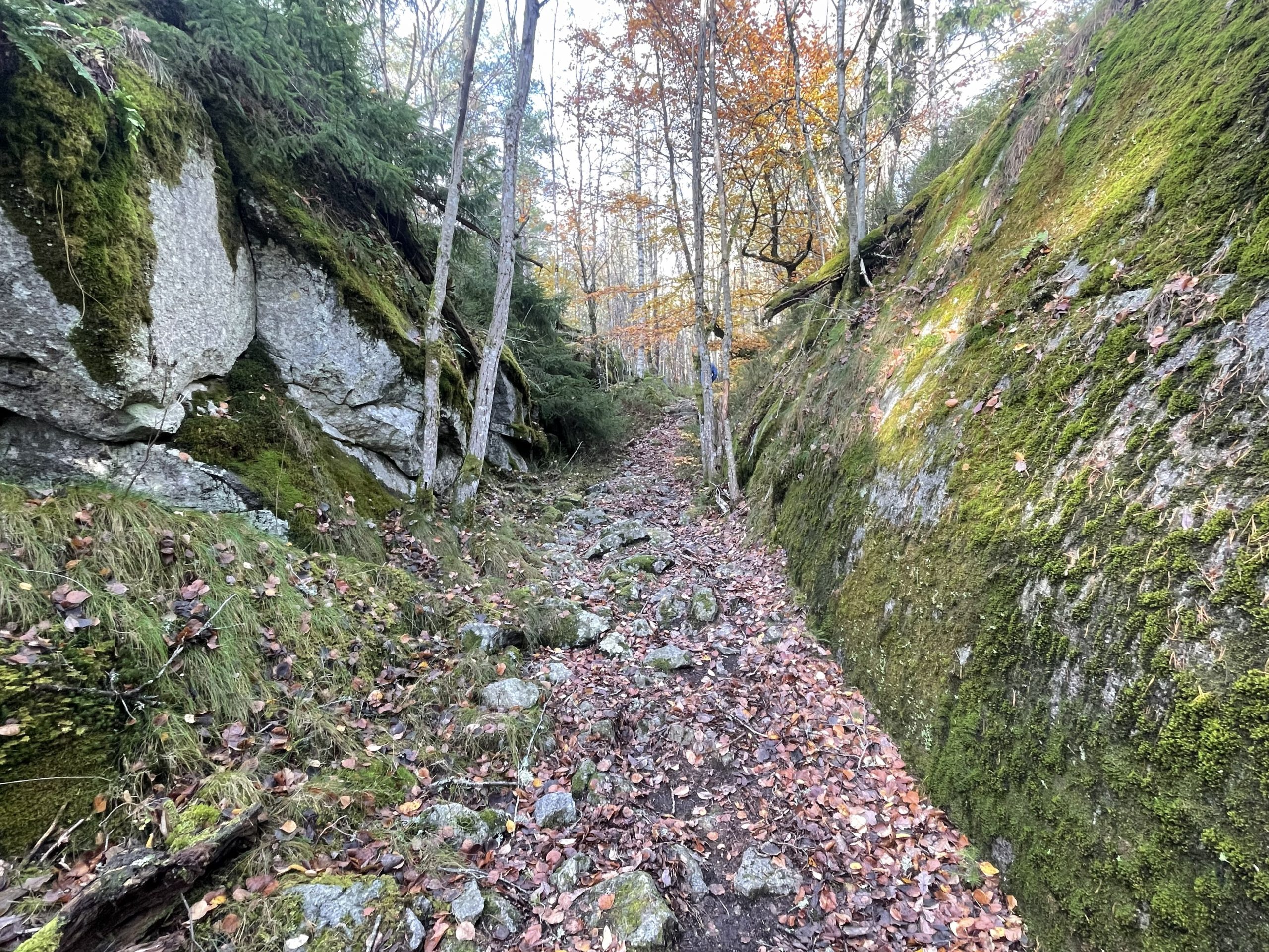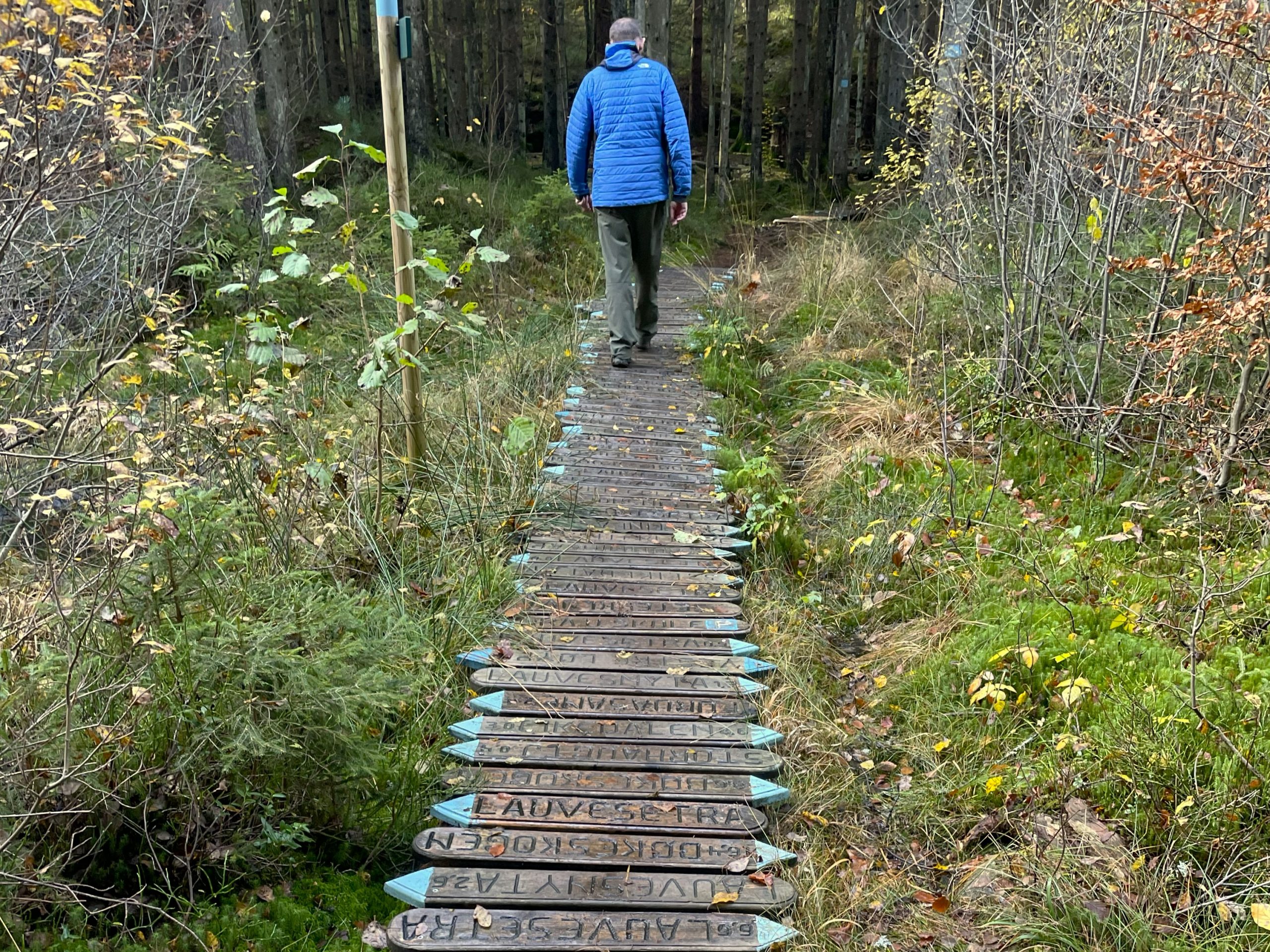 We still had a long wait to catch our ferry so we found a walk on the outskirts of Larvik up to the small forested summit of Martineåsen. We had fun clambering over fallen trees and squidging through boggy undergrowth in the woods. When we got back to the van we were ravenous so we had a late lunch and prepped some sandwiches for the ferry.