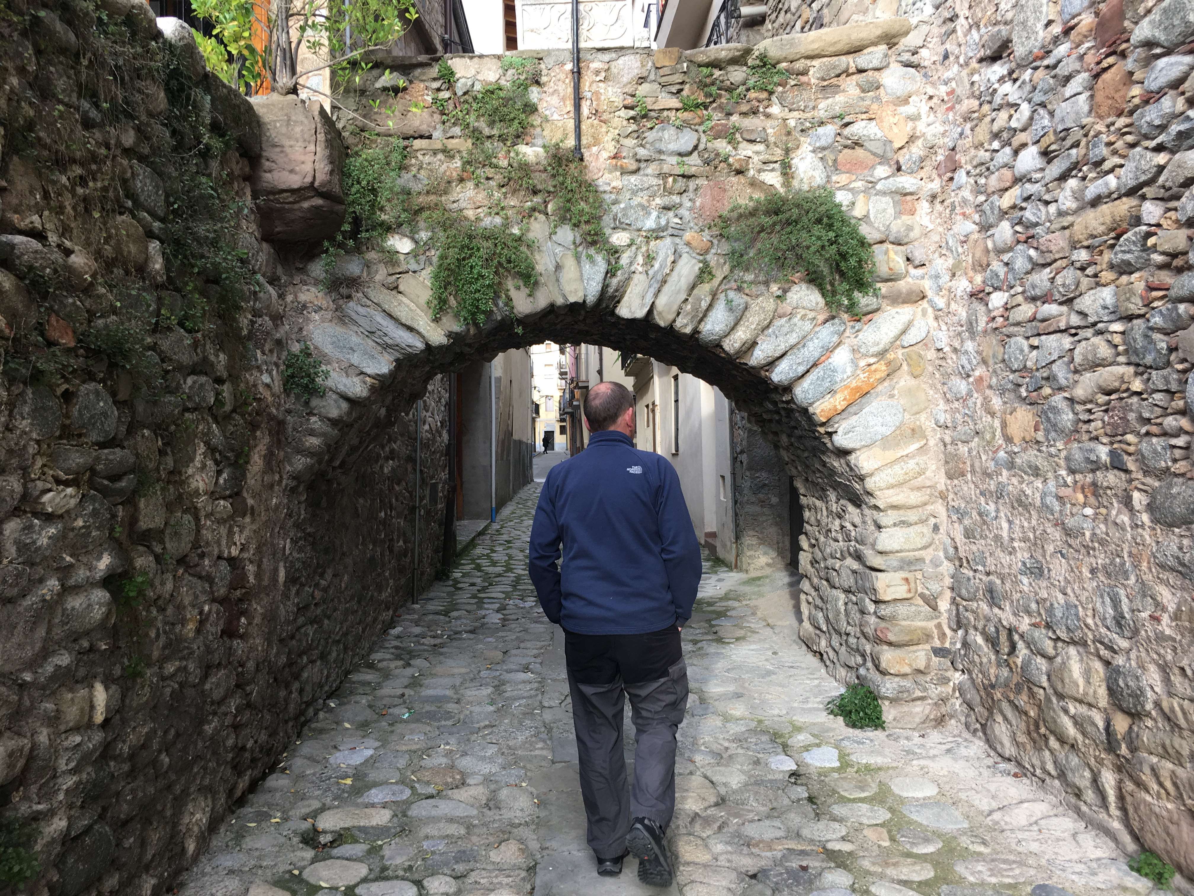 Our first overnight stop was in the town of Camprodon, liberally decorated with the yellow ribbons supporting Catalan independence. The motorhome parking here was in an oddly circular parking area where the signs, according to google translate, proclaimed that we should park like barrels. The weather had turned a bit grim and grey in the afternoon but we still enjoyed a walk around the town, taking in the ‘Pont Nou’, a gothic arched bridge that delighted me with it’s steep cobbled span over the rushing river Ter.