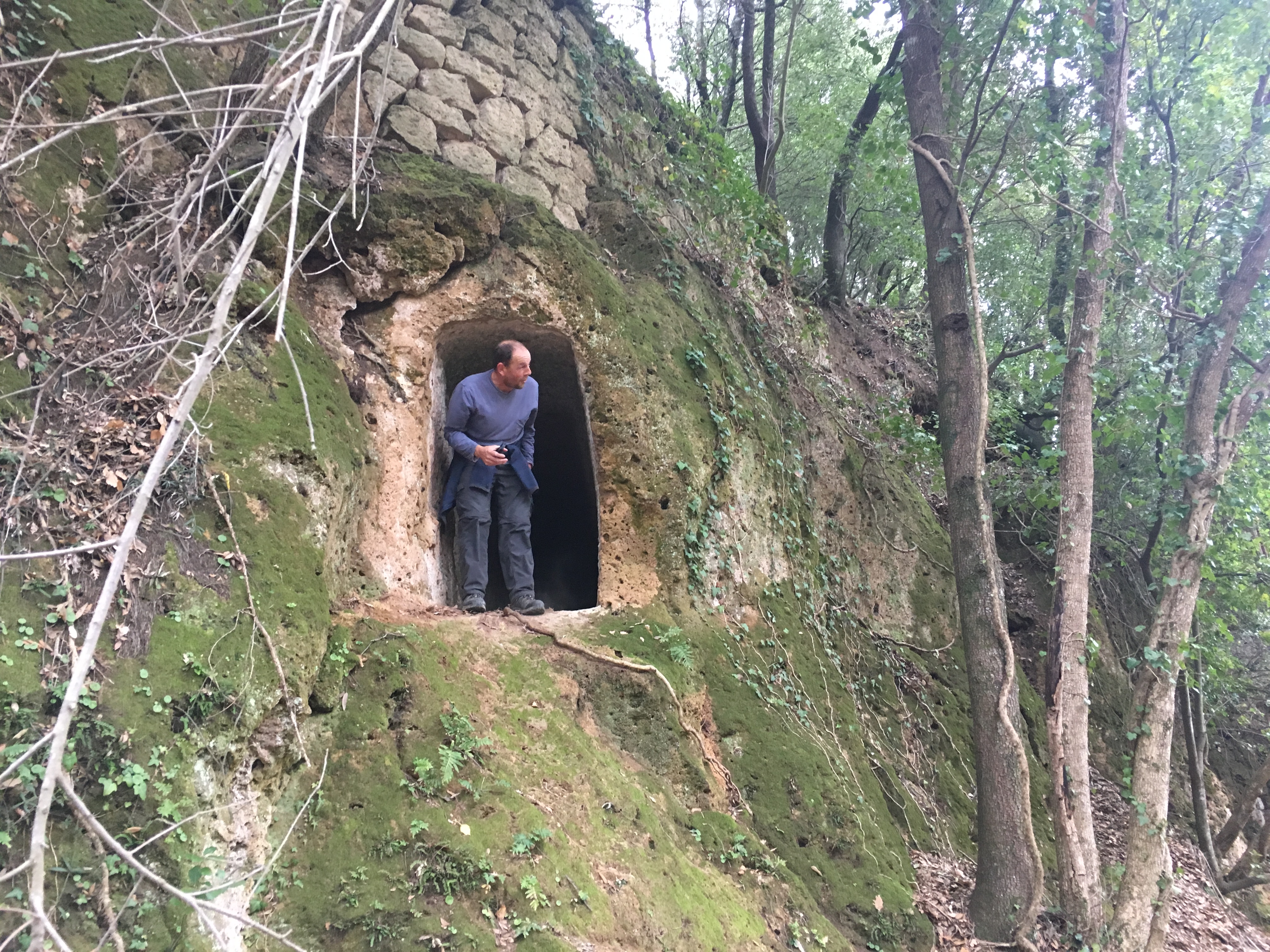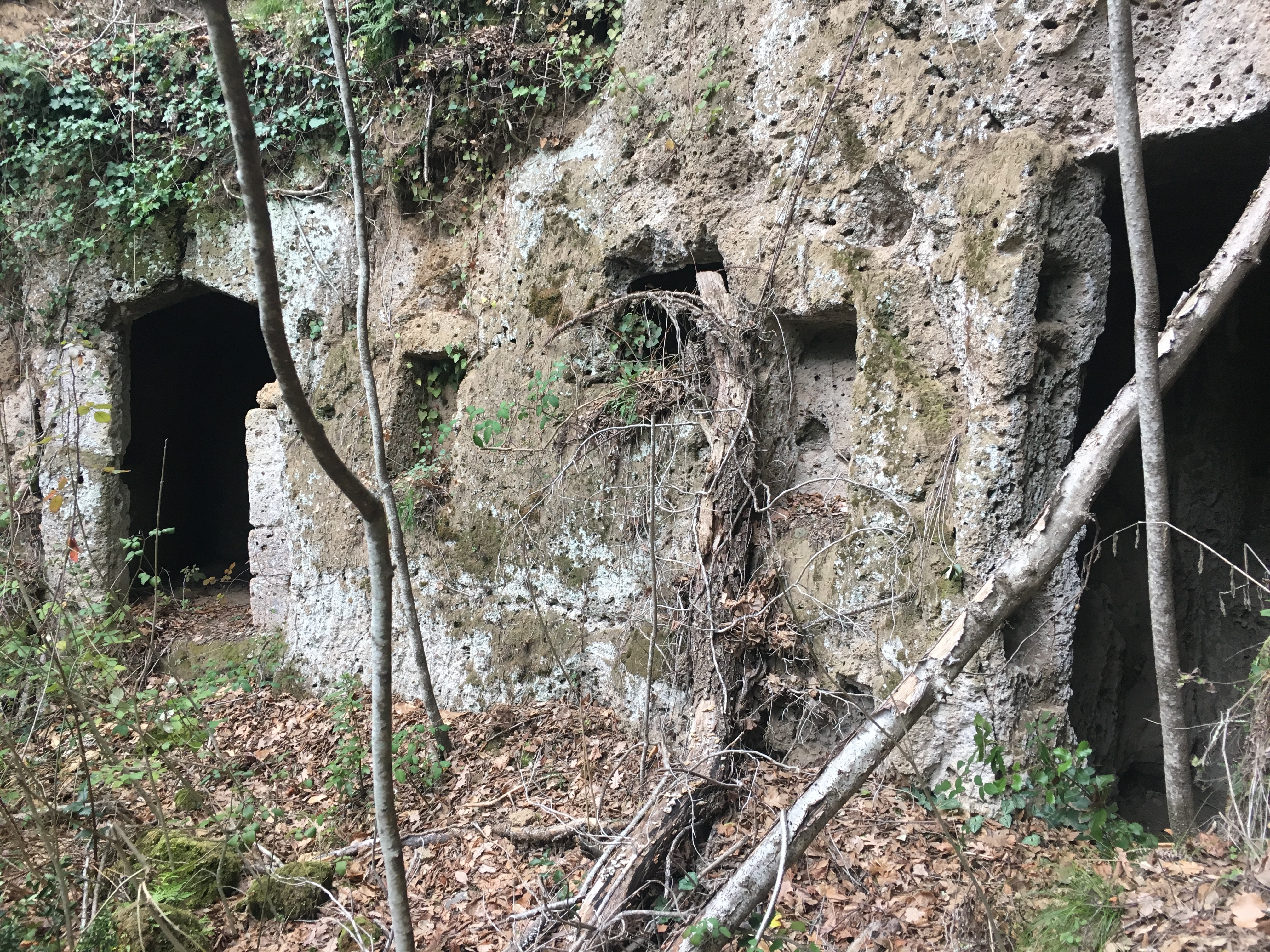 Emerging from the Vie Cave we could then head in the opposite direction to the troglodyte town of Vitozza, an archeological area of many cave dwellings from different periods. Spread out through the forest it was not well signposted, or at least we didn’t find any informative signs, but we had not approached from the usual direction. We felt that we were probably missing some interesting sights and should have given the area more time, but it was starting to get a bit dimpsy so we needed to get back.
