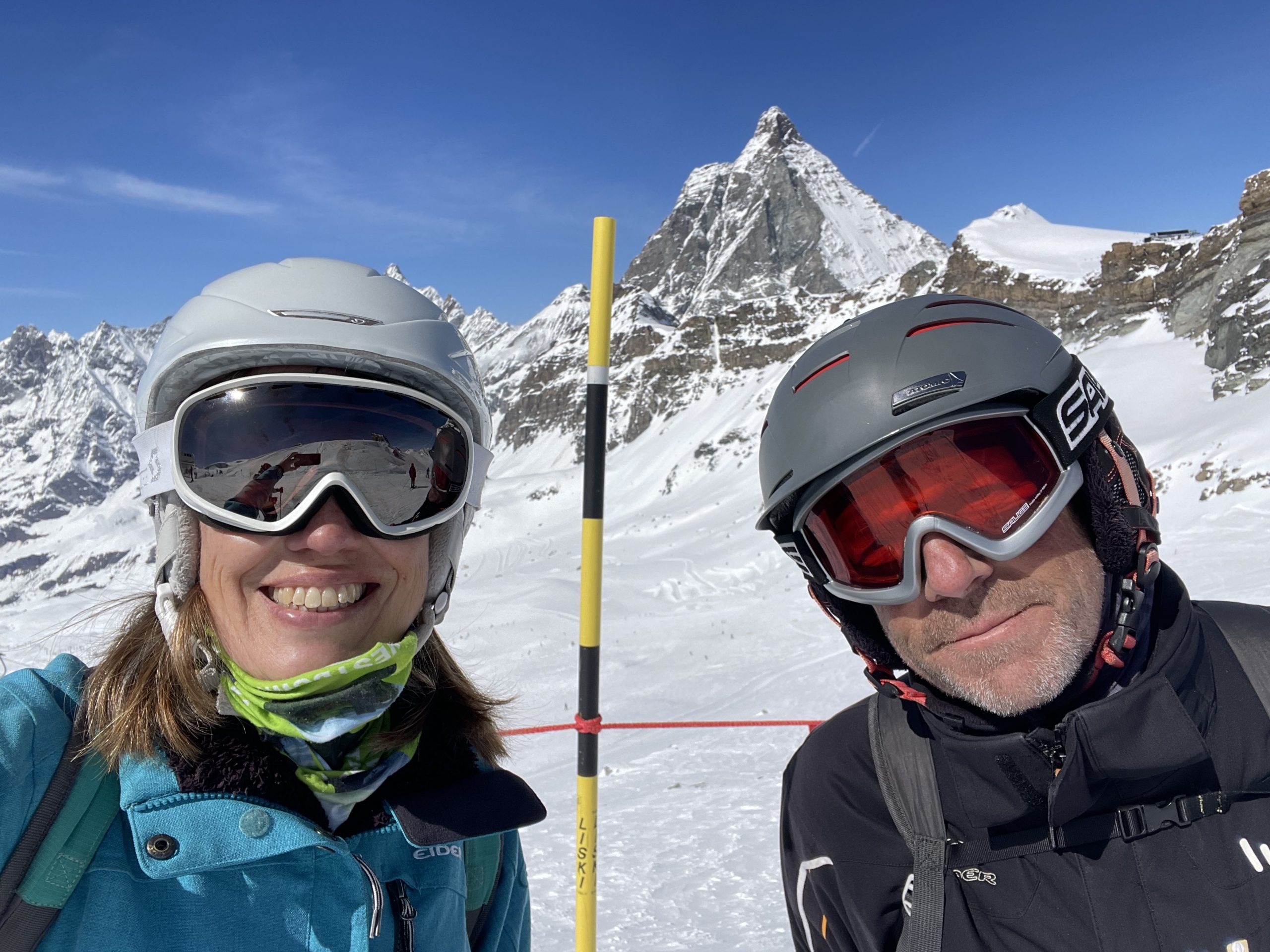 The following morning we were up for the first lift (sorry, I meant to say “telecabina”) to the slopes. The snow was in excellent condition, squeaky and fresh at the top and only slightly slushy come the afternoon. It was lovely to be back in one of our favourite places on such a nice day. We zoomed around the slopes from top to bottom, deciding not to venture over to Zermatt. We were impressed with the new lift they had installed to replace the old Goillet chairlift. The old lift was slow, uncomfortable and very exposed so that you’d be frozen by the time you reached the top. Now it’s been replaced by a modern six seater chair lift with heated seats and a protective canopy to shield people from cold winds. Unfortunately the side effect of this is that the runs from the lift are much more popular – we liked having them to ourselves.