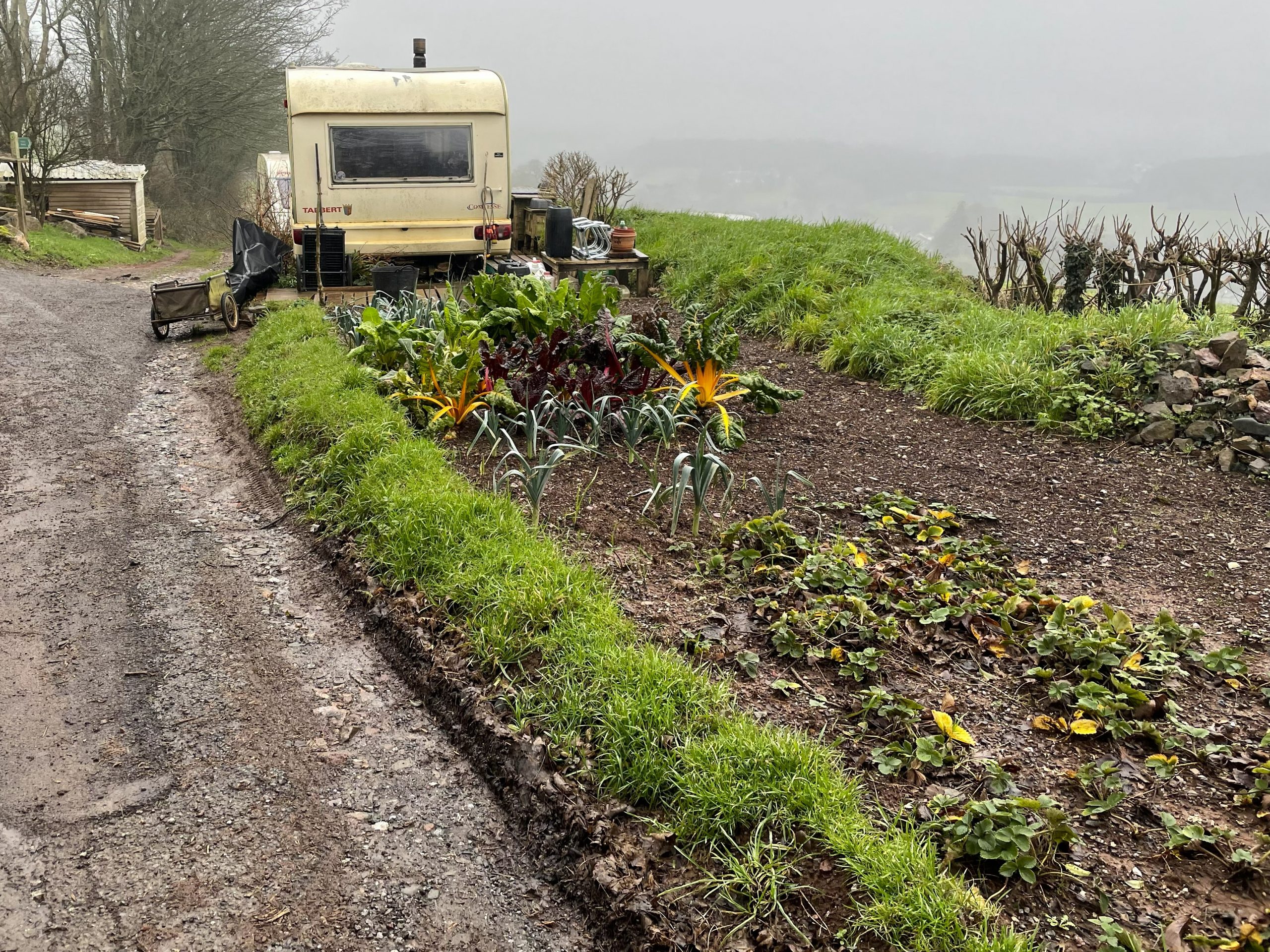 - A small encampment in the country lanes complete with vegetable garden