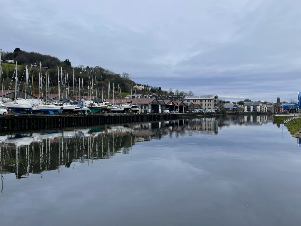 When we’d arrived and finally sorted ourselves out we had a bracing 10k afternoon walk around the outskirts of Totnes, spotting several alternative living encampments in the surrounding countryside. The weather was grey but not raining which was a minor miracle for January 2026 in Devon. We finished the walk along the river in the twilight and popped into the Seven Stars for a couple of drinks in this historic hotel.