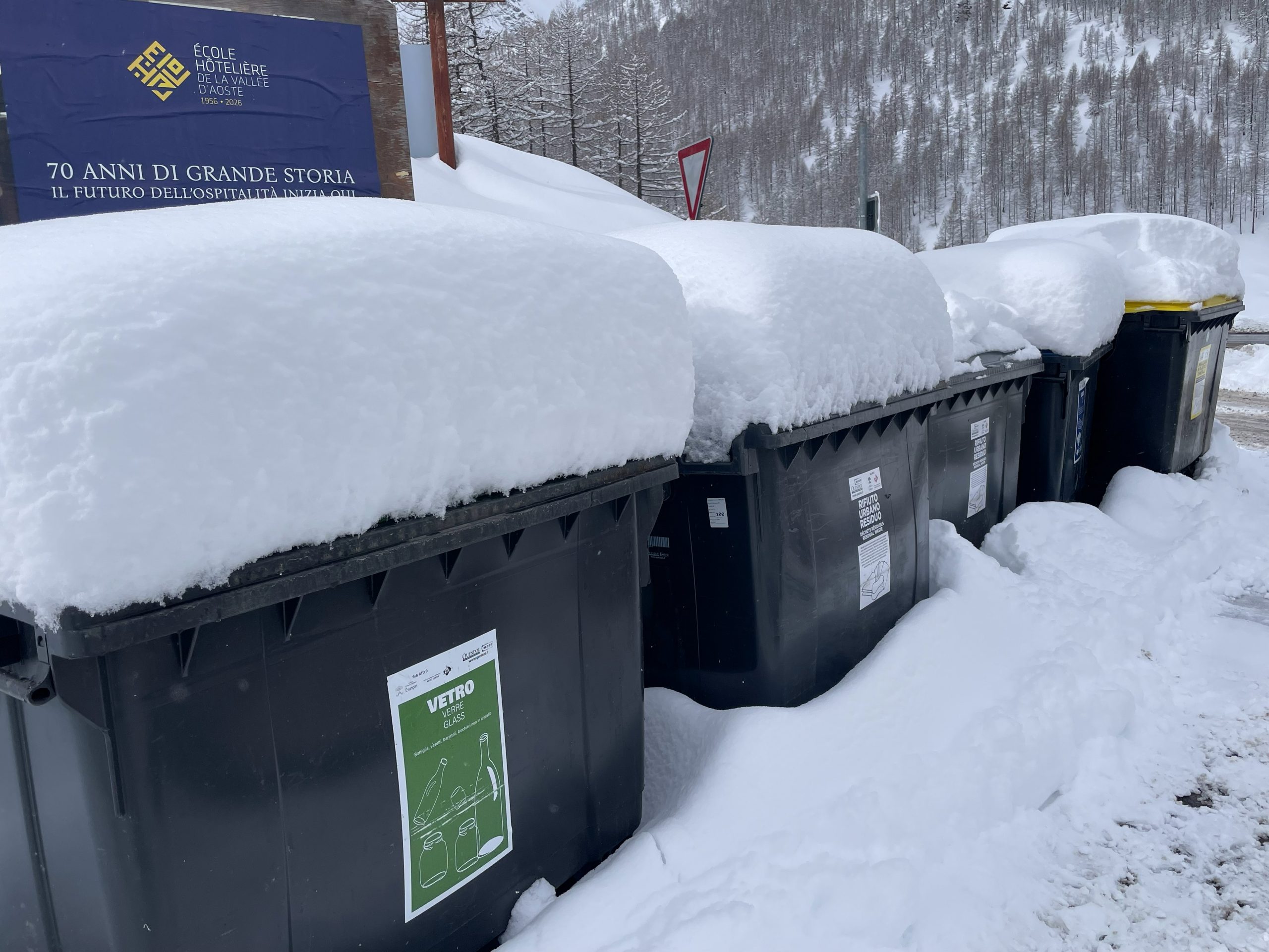 On the Saturday the forecast snow arrived. The forecast kept changing but in the end we must have had about 80cm of new snow down in the sosta and over a meter higher up in the resort. It was a great day for watching the Six Nations Super Saturday, even though the result wasn’t what we wanted. The snow piled up outside and the snowploughs made occasional forays into the sosta to clear what they could. Our next door neighbours made a large snow person in front of the Hymer, a successful effort to prevent the snowplough from venturing too close.