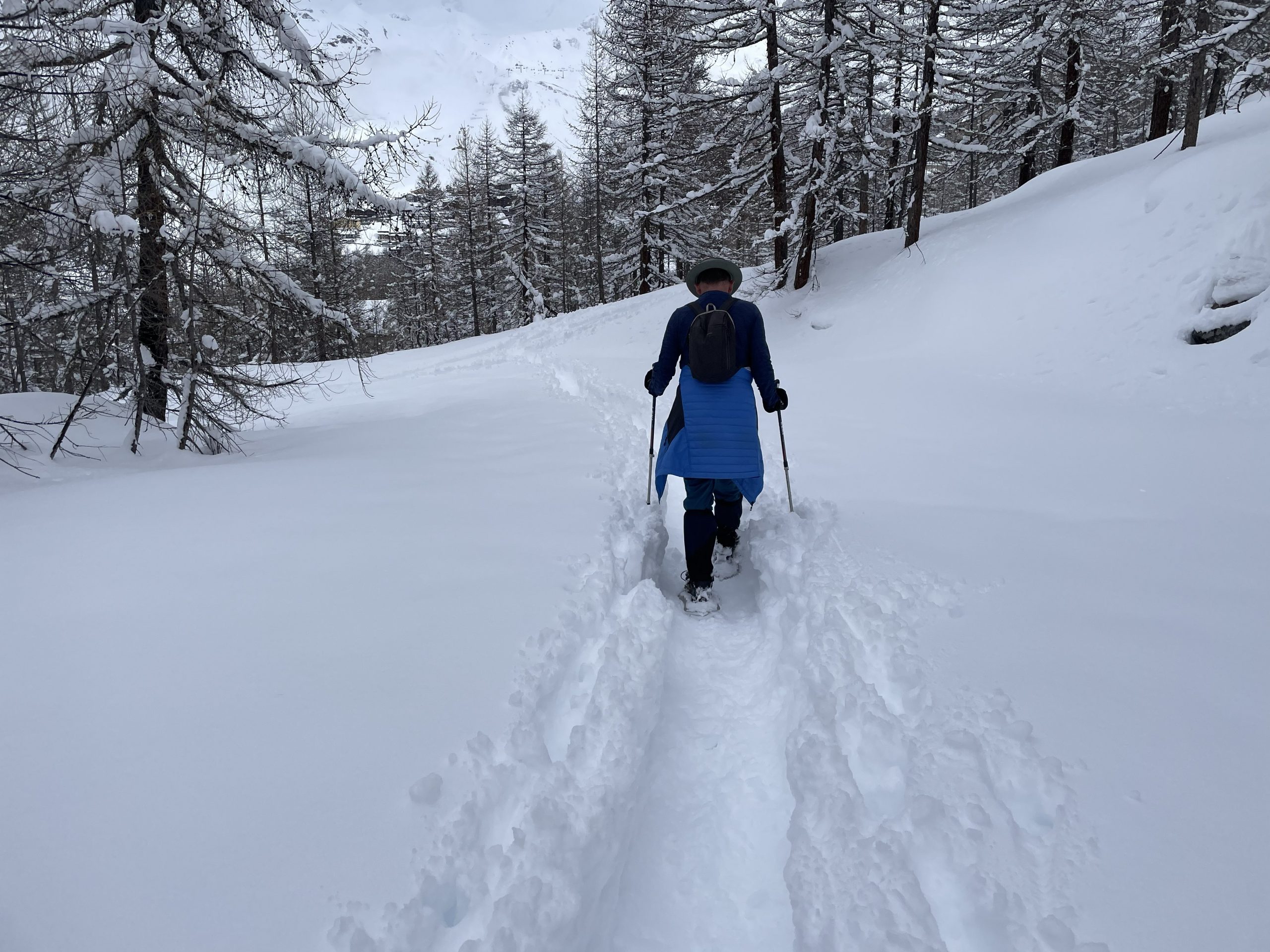 After a day in the van we were looking forward to powder conditions on the slopes, but due to the volume of snow many of the resort runs were closed. We could see on the webcams that the few open slopes were absolutely full of people like ants on sugar, so we decided it wouldn’t be worth it. Instead we took ourselves out for a snowshoe walk.
