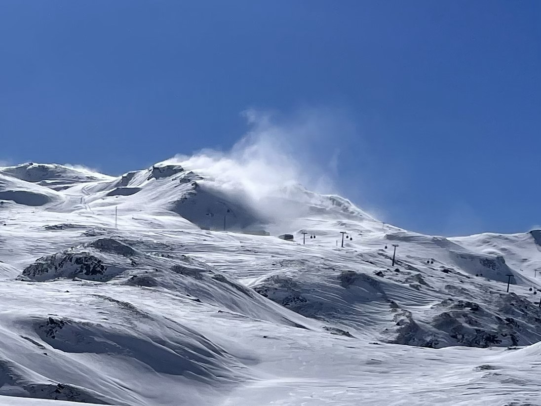 We had looked forward to our first day after the snow with great anticipation. The morning started well, but the afternoon soon deteriorated with strong winds closing lifts and making some runs almost impossible to ski. Gusts pushed people around and blasted snow into the air, obscuring vision and bringing people to a standstill. We skied for as long as we could but gave up in the early afternoon with a sense of disappointment.