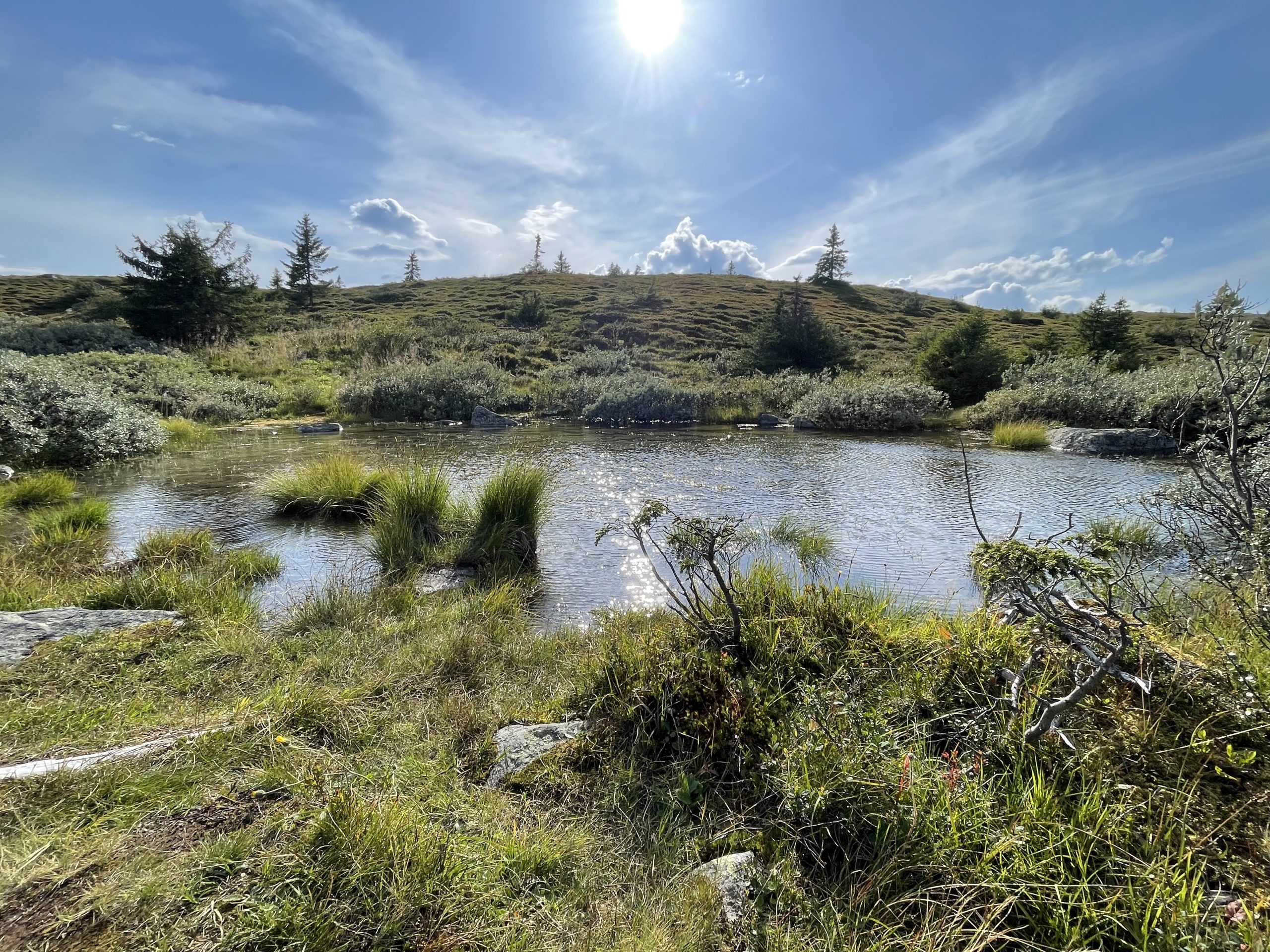 The weather was fine and warm when we arrived and yet again we decided to get out and stretch our legs with an evening walk. Right in front of us was the small summit of Nevelfjell, a perfect stroll get the blood flowing and raise an appetite for dinner.