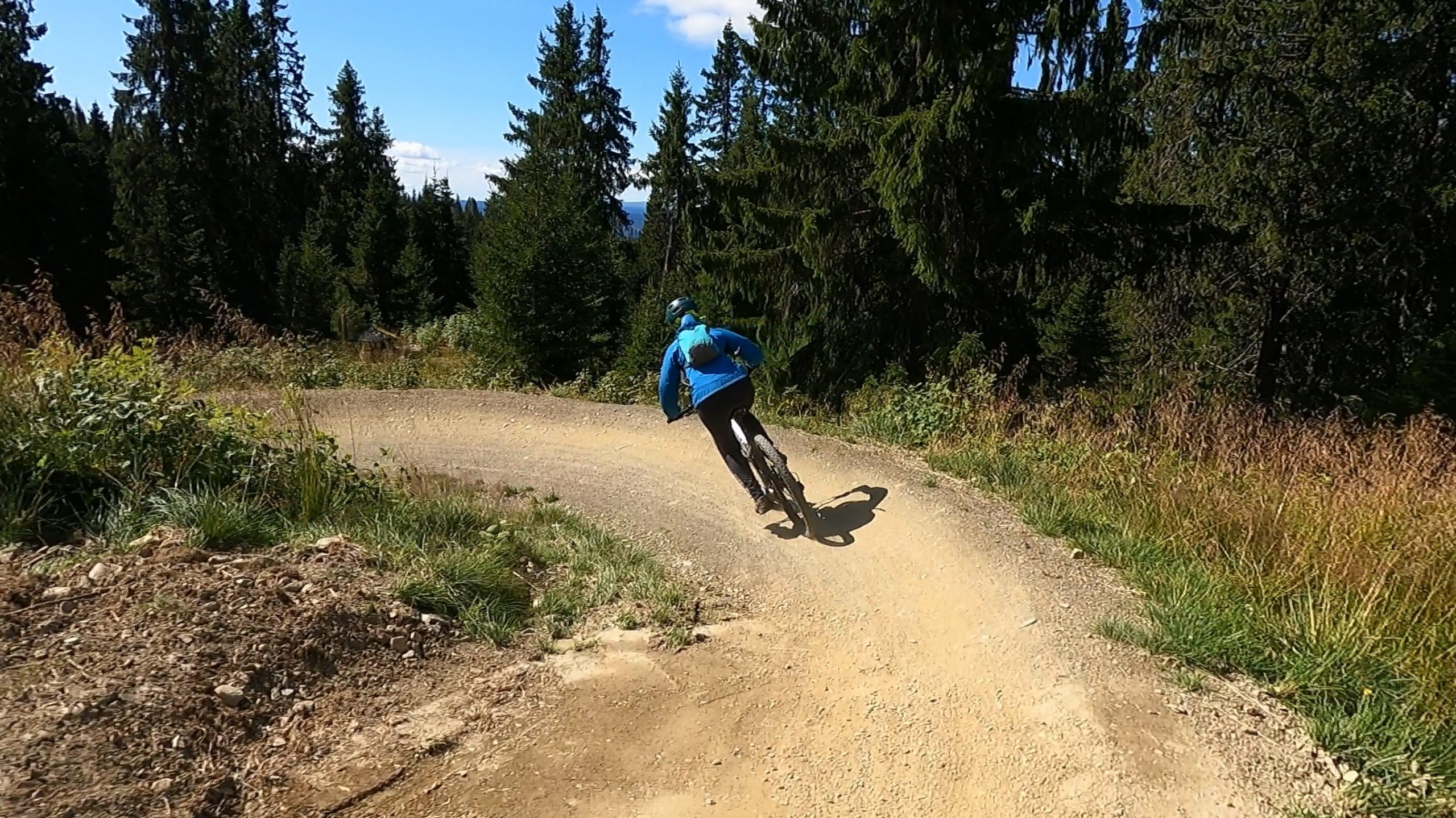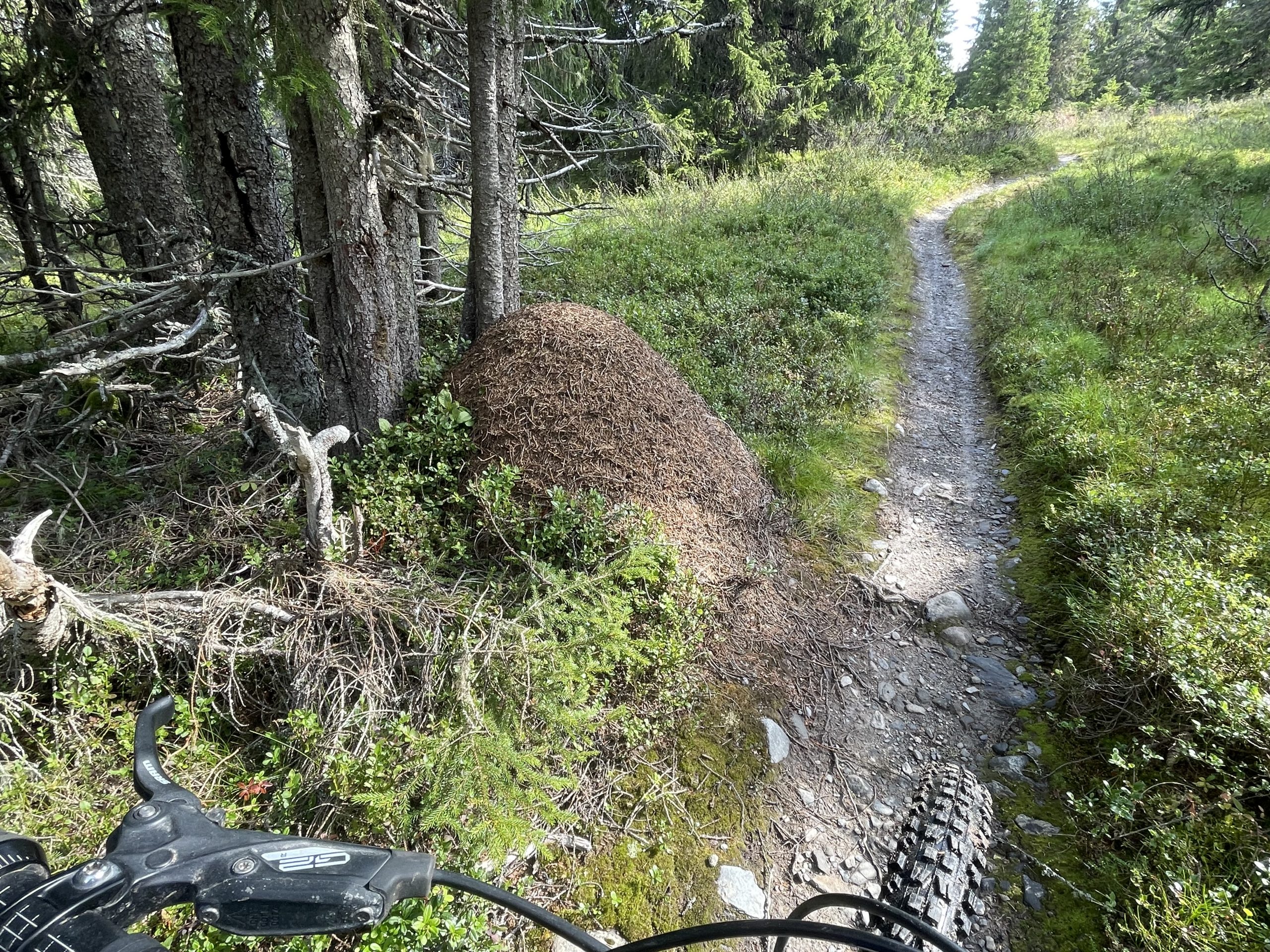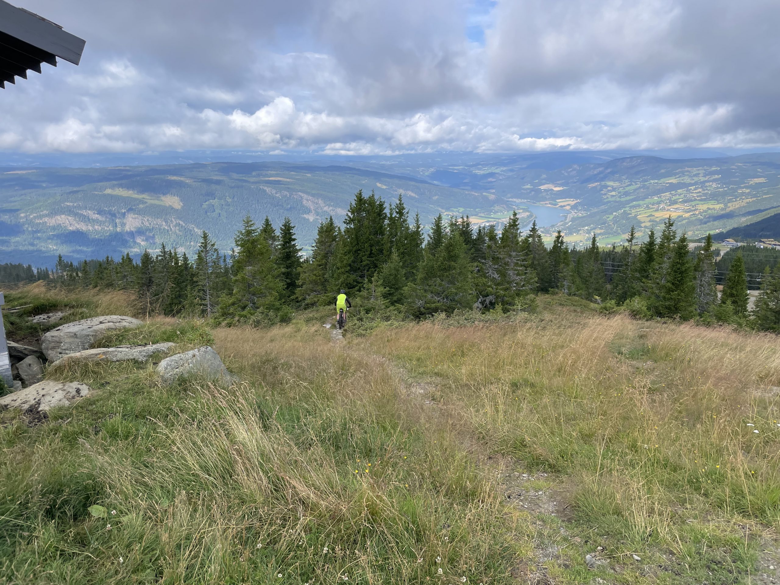 Downhill biking here cost us 499 NOK each plus a non refundable cost of 75 NOK each for the card. That gives us two more ski area cards to add to our collection. Maybe we’ll come back and ski sometime. The car park got busier as we took the bikes off the bike rack and got changed. The area was buzzing all day with mostly families and groups of friends. Small children congregated in around the pump track at the top of the gondola. Riders with protective gear from head to toe sped down the black runs. Somewhere in between, we spent the next five hours on the green and blue trails.
