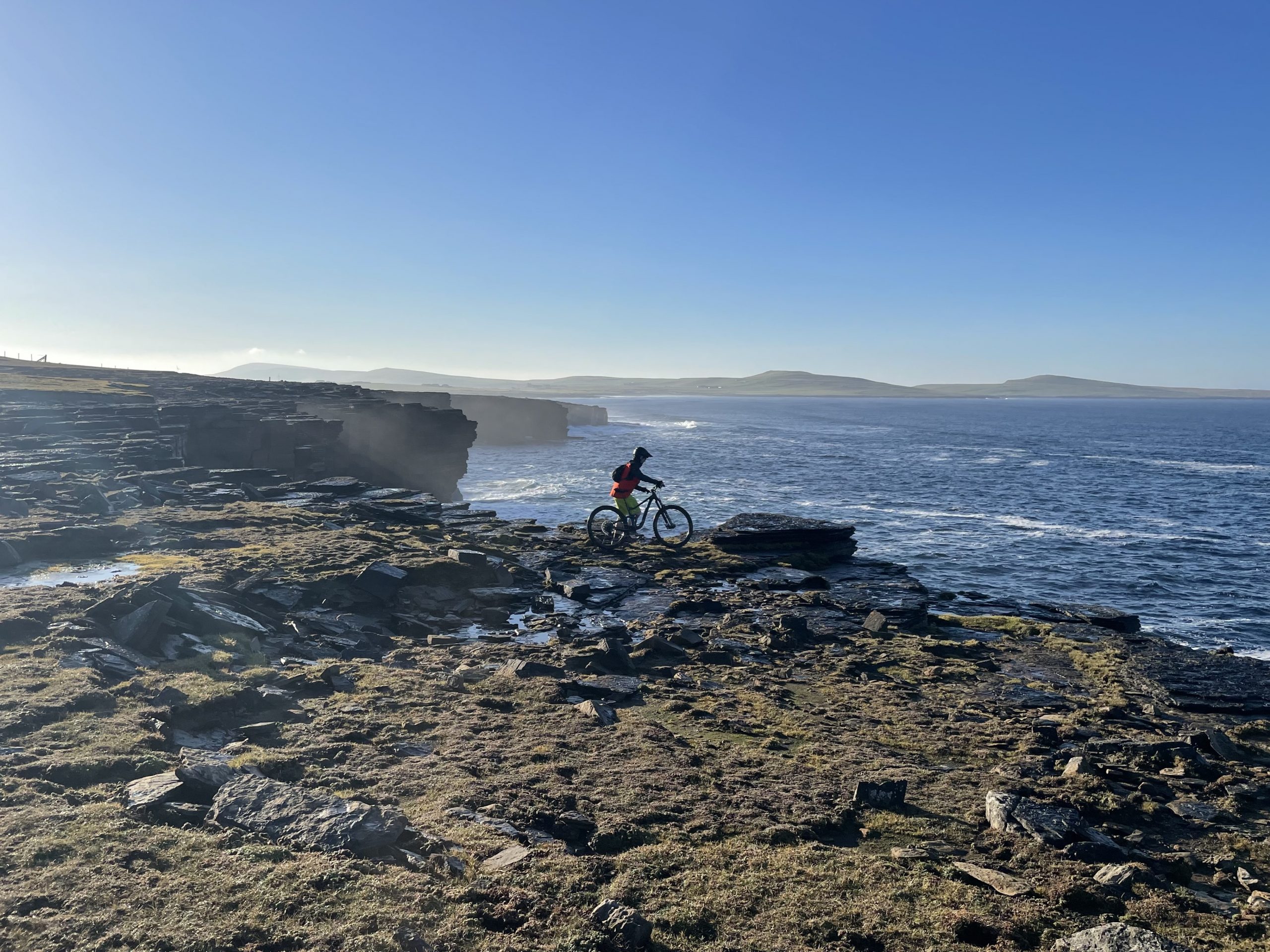 We had a couple of historic sites on our agenda for our first full day on the island. From the campsite we cycled north towards the huge sandy bay that is ‘The Ouse’. We cycled out to the shingle spit that splits the bay. From there we decided to cycle around the coast for a short way, across slabby slippery rocks to the Bay of Skaill.