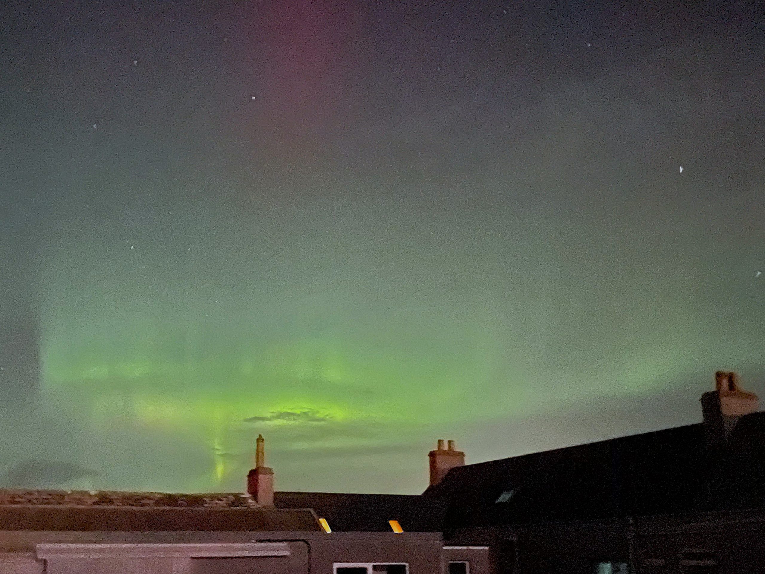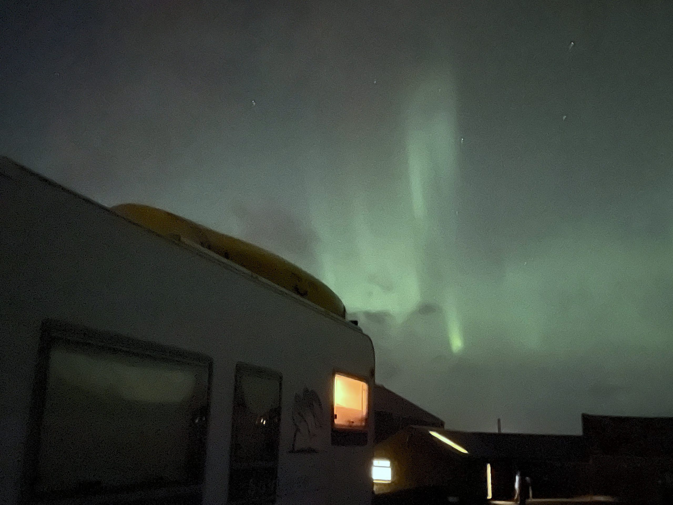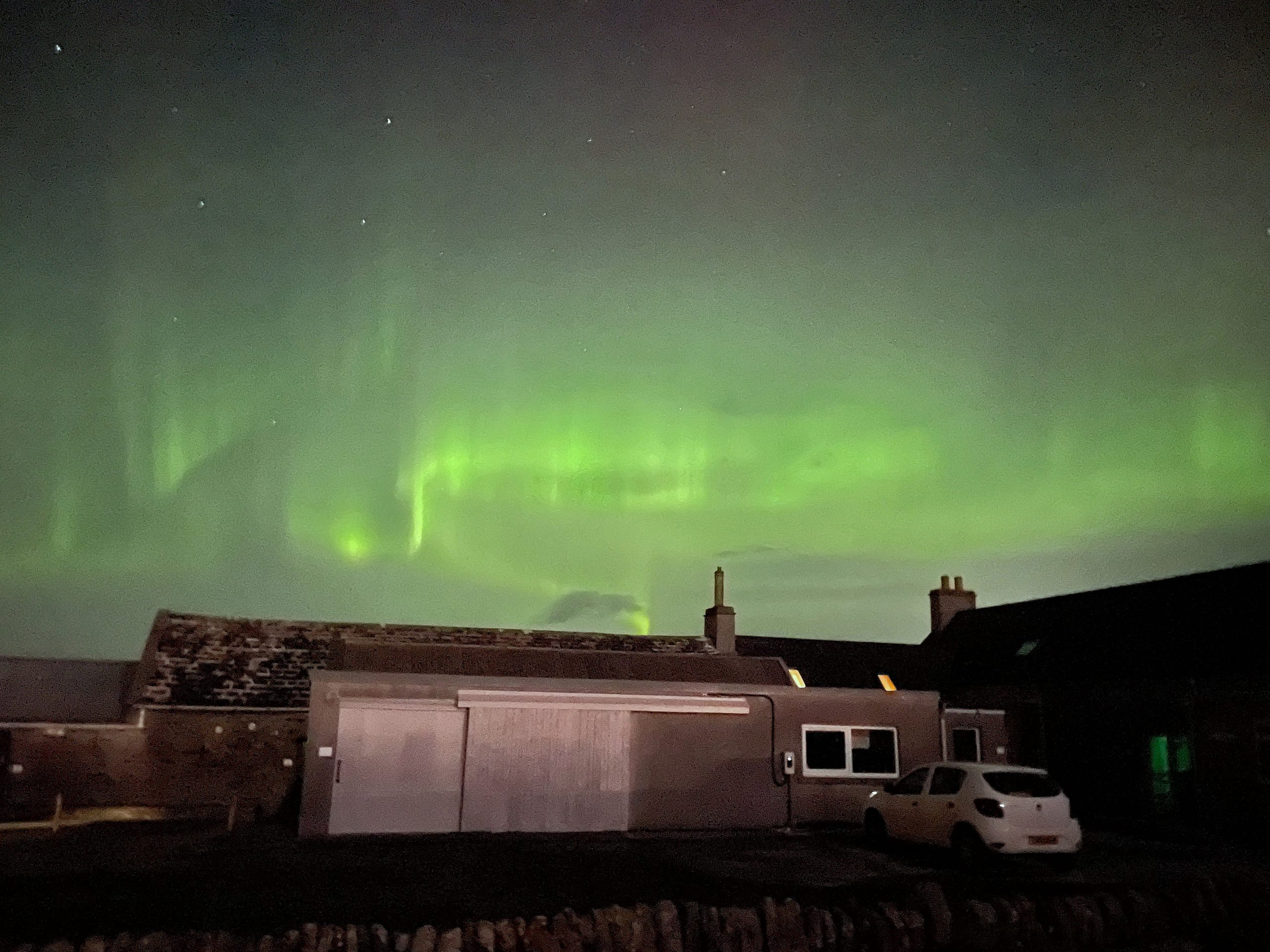 Using phones on night mode shows up the aurora a lot more vividly than with the naked eye at first. Once you see it through the camera it becomes a lot more easy to spot without the camera. There is something unique about the faint glow and the way it shifts and eddies in the sky, even when its not the bright green you might expect.