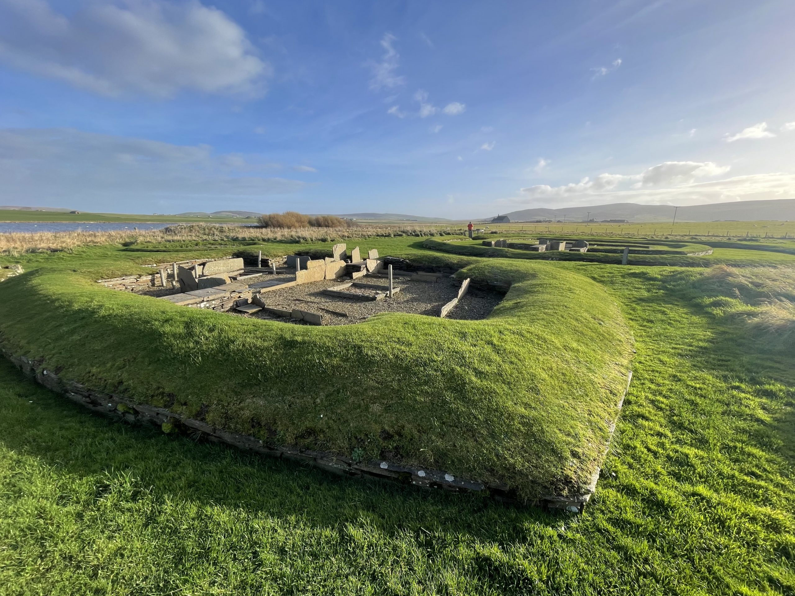 Unfortunately we were a couple of months too late to see the dig at the Ness of Brodgar, a 20 year excavation of a prehistoric village that has featured on programmes like Digging for Britain. When we walked past the site it had already been recovered with earth to preserve it for future archaeologists who may be able to use more advanced technology to understand more about our ancestors. We did get to see to the remains of the Barnhouse settlement, another Neolithic village nearby.